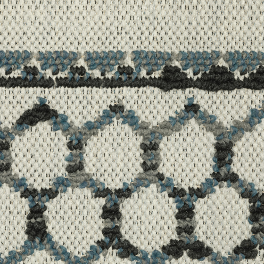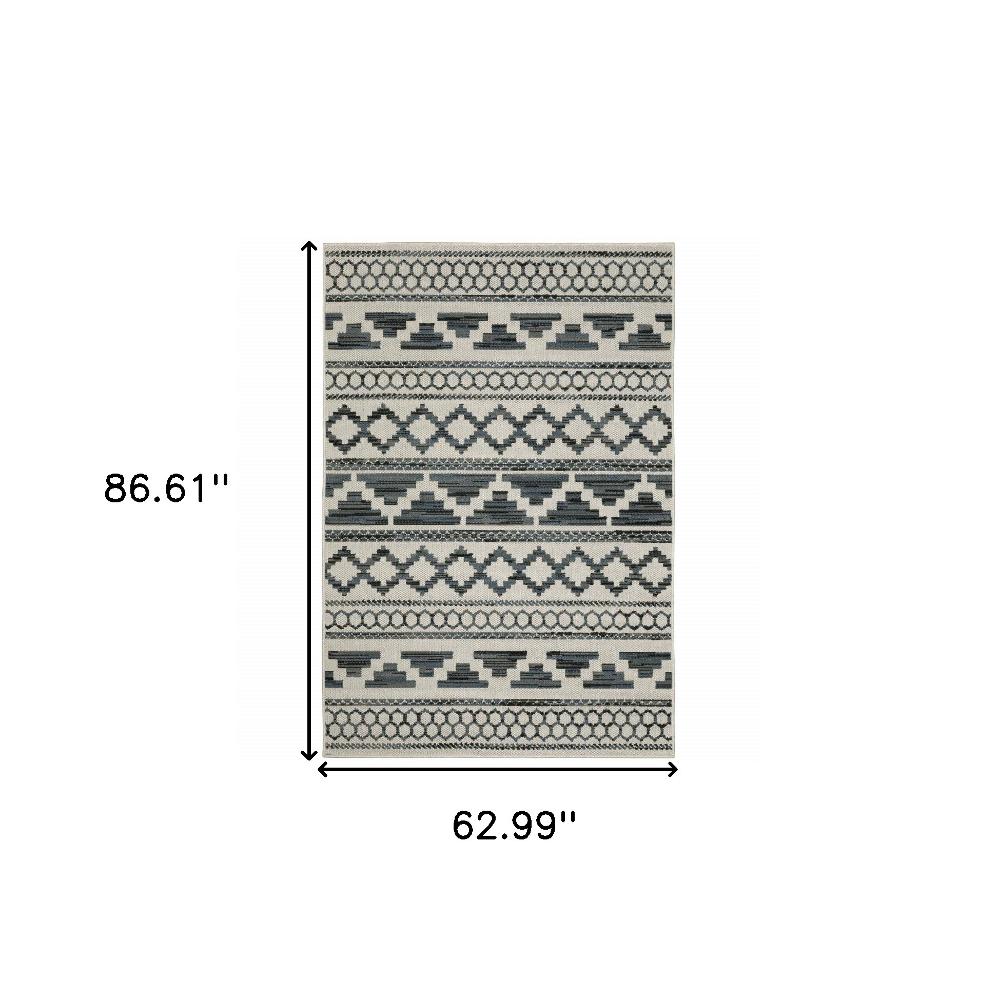 Add some artistry to your room with this 5-foot x 7-foot blue and beige geometric stain resistant indoor outdoor area rug. This rectangle shaped rug features a geometric design in blue and beige to give it visual interest. A classic shape marries with good looking design for your space Ideal for spaces with kids and pets, this rug is stain resistant to help repel stains and spilled liquids. Place this area rug against a hardwood or tile floor and it will enliven your living space with style and sophistication. 0.15-inch H x 62.99-inch W x 86.61-inch D