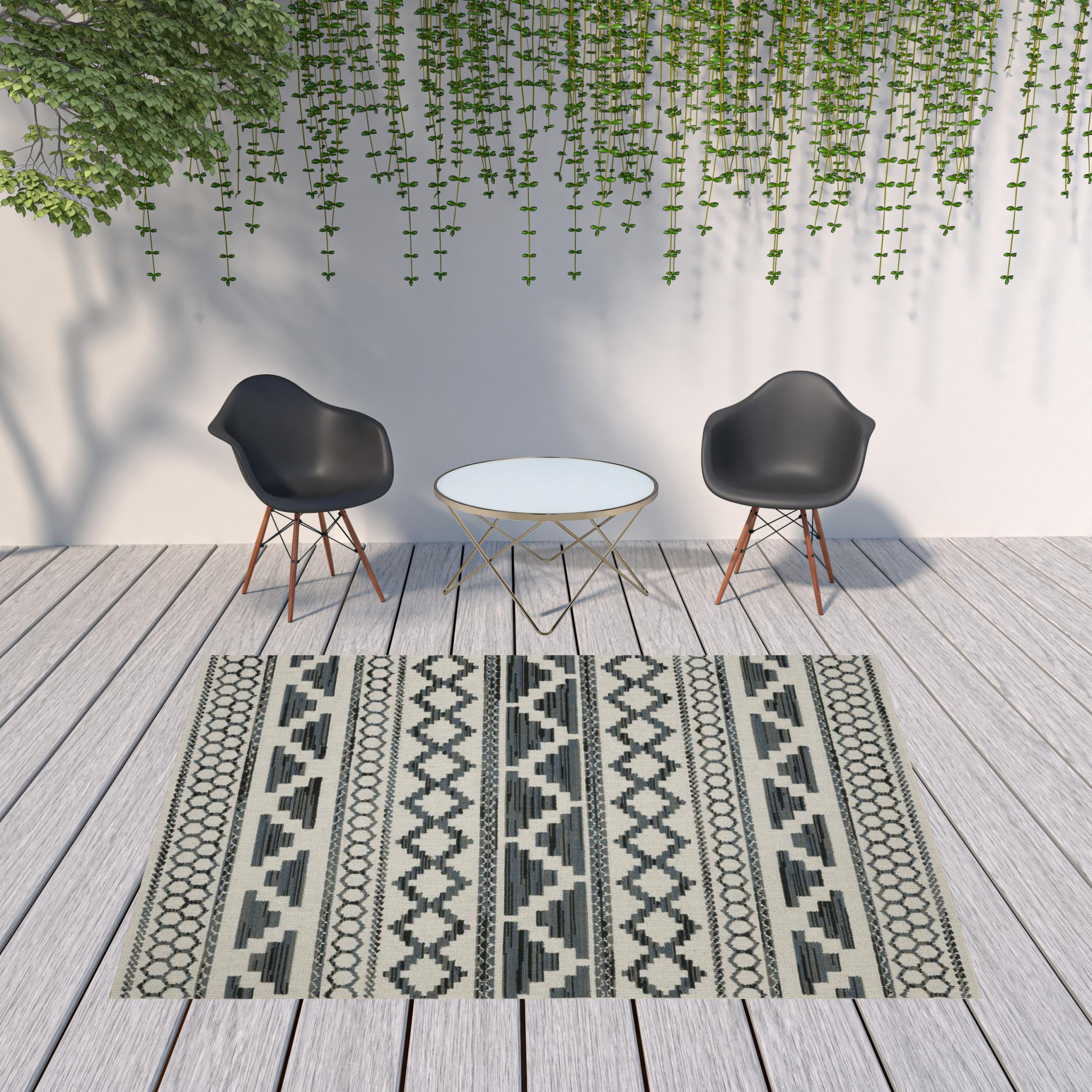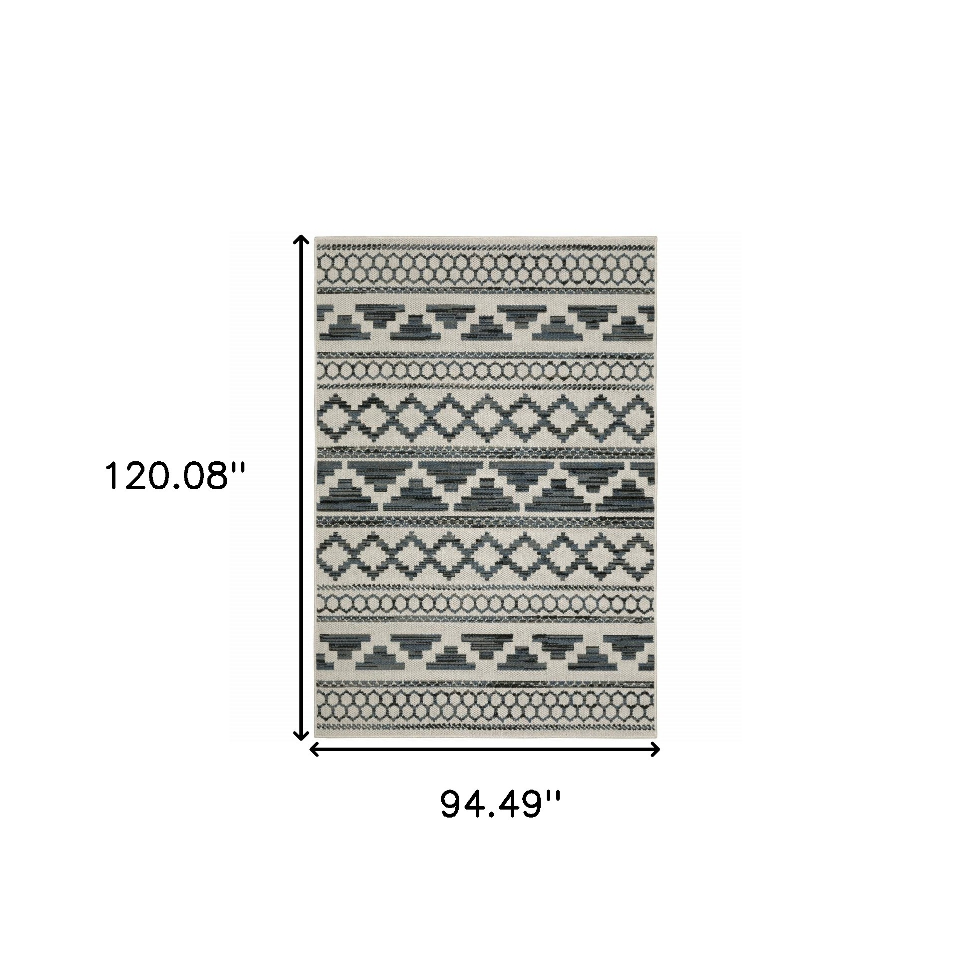 Set an inviting tone in your space with this 8-foot x 10-foot blue and beige geometric stain resistant indoor outdoor area rug. This rectangle shaped rug features a geometric design in blue and beige to give it visual interest. A classic shape marries with good looking design for your space Ideal for spaces with kids and pets, this rug is stain resistant to help repel stains and spilled liquids. Area Rugs help to give warmth and sense of home to your space. 0.15-inch H x 94.49-inch W x 120.08-inch D