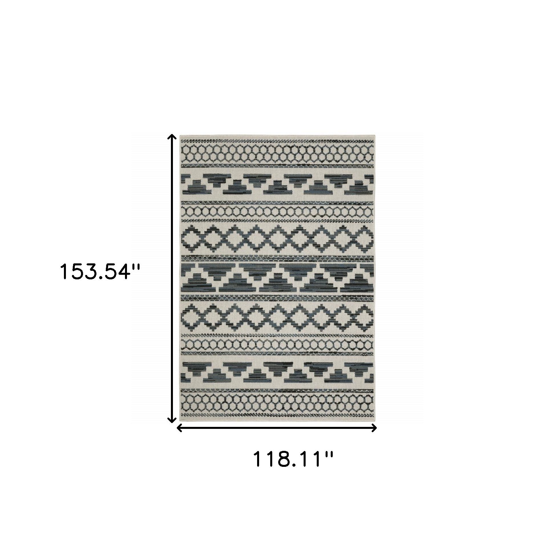 Set an inviting tone in your space with this 10-foot x 13-foot blue and beige geometric stain resistant indoor outdoor area rug. This rectangle shaped rug features a geometric design in blue and beige to give it visual interest. A classic shape marries with good looking design for your space Ideal for spaces with kids and pets, this rug is stain resistant to help repel stains and spilled liquids. Area Rugs help to give warmth and sense of home to your space. 0.15-inch H x 118.11-inch W x 153.54-inch D