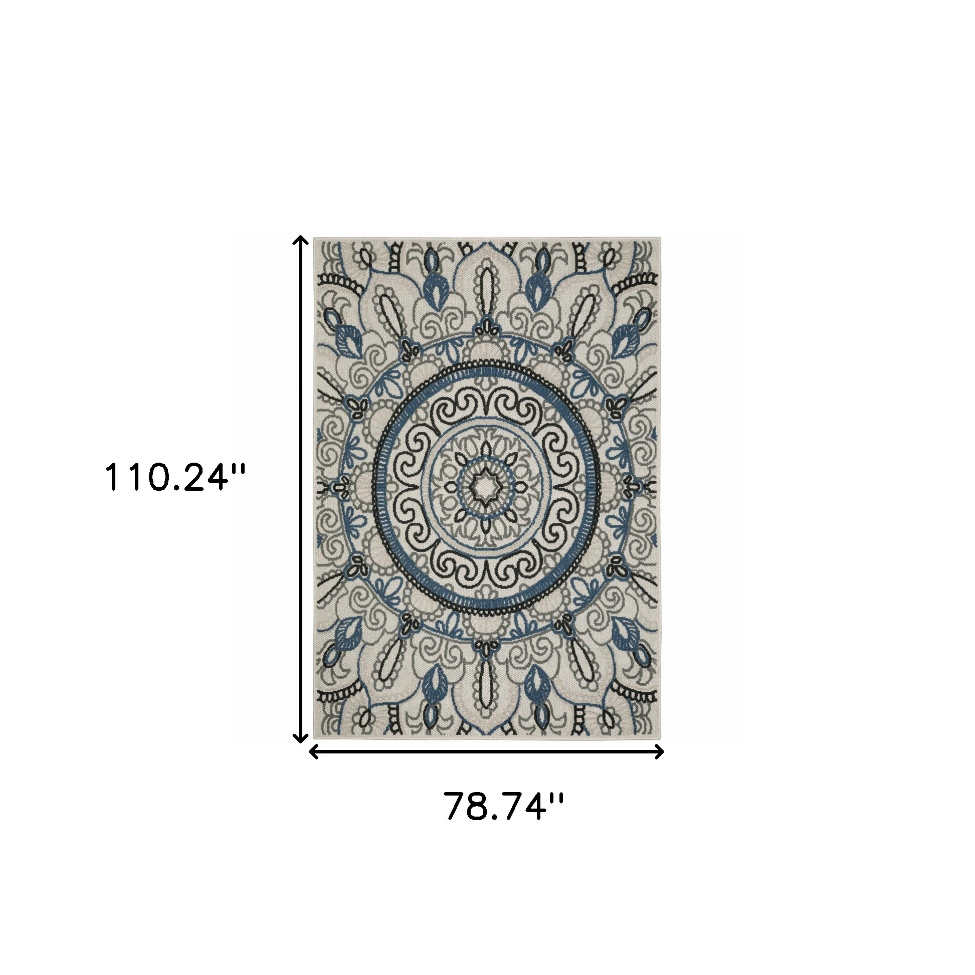 Set an inviting tone in your space with this 7-foot x 9-foot blue and beige geometric stain resistant indoor outdoor area rug. This rectangle shaped rug features a geometric design in blue and beige to give it visual interest. A classic shape marries with good looking design for your space Ideal for spaces with kids and pets, this rug is stain resistant to help repel stains and spilled liquids. Place this area rug against a hardwood or tile floor and it will enliven your living space with style and sophistication. 0.15-inch H x 78.74-inch W x 110.24-inch D