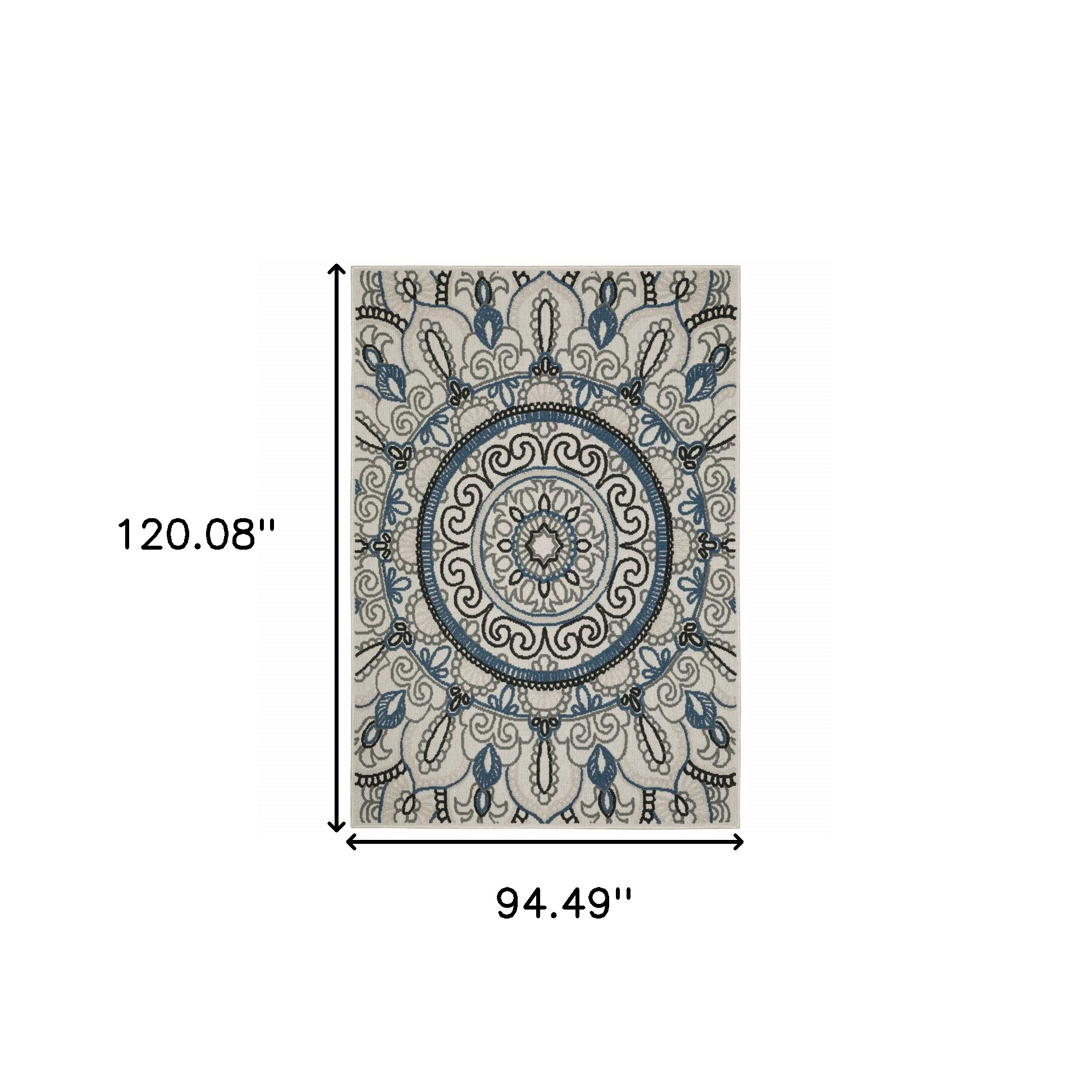 Add some artistry to your room with this 8-foot x 10-foot blue and beige geometric stain resistant indoor outdoor area rug. This rectangle shaped rug features a geometric design in blue and beige to give it visual interest. A classic shape marries with good looking design for your space Ideal for spaces with kids and pets, this rug is stain resistant to help repel stains and spilled liquids. Place this area rug against a hardwood or tile floor and it will enliven your living space with style and sophistication. 0.15-inch H x 94.49-inch W x 120.08-inch D