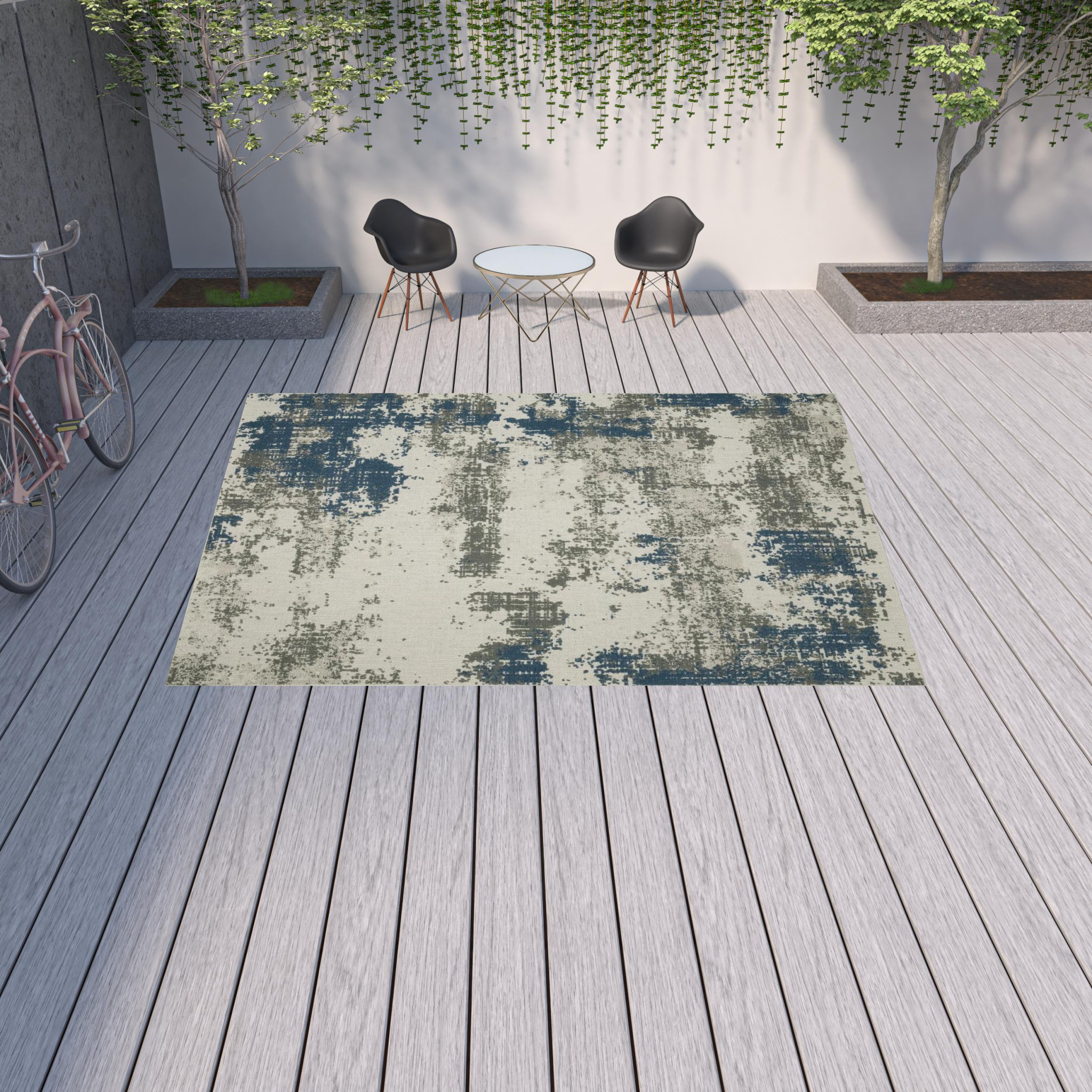 Add great coloration and comfortable texture to your space with this 10-foot x 13-foot blue and beige abstract stain resistant indoor outdoor area rug. This rectangle shaped rug features a abstract design in blue and beige to give it visual interest. A classic shape marries with good looking design for your space Ideal for spaces with kids and pets, this rug is stain resistant to help repel stains and spilled liquids. Place this area rug against a hardwood or tile floor and it will enliven your living space with style and sophistication. 0.15-inch H x 118.11-inch W x 153.54-inch D