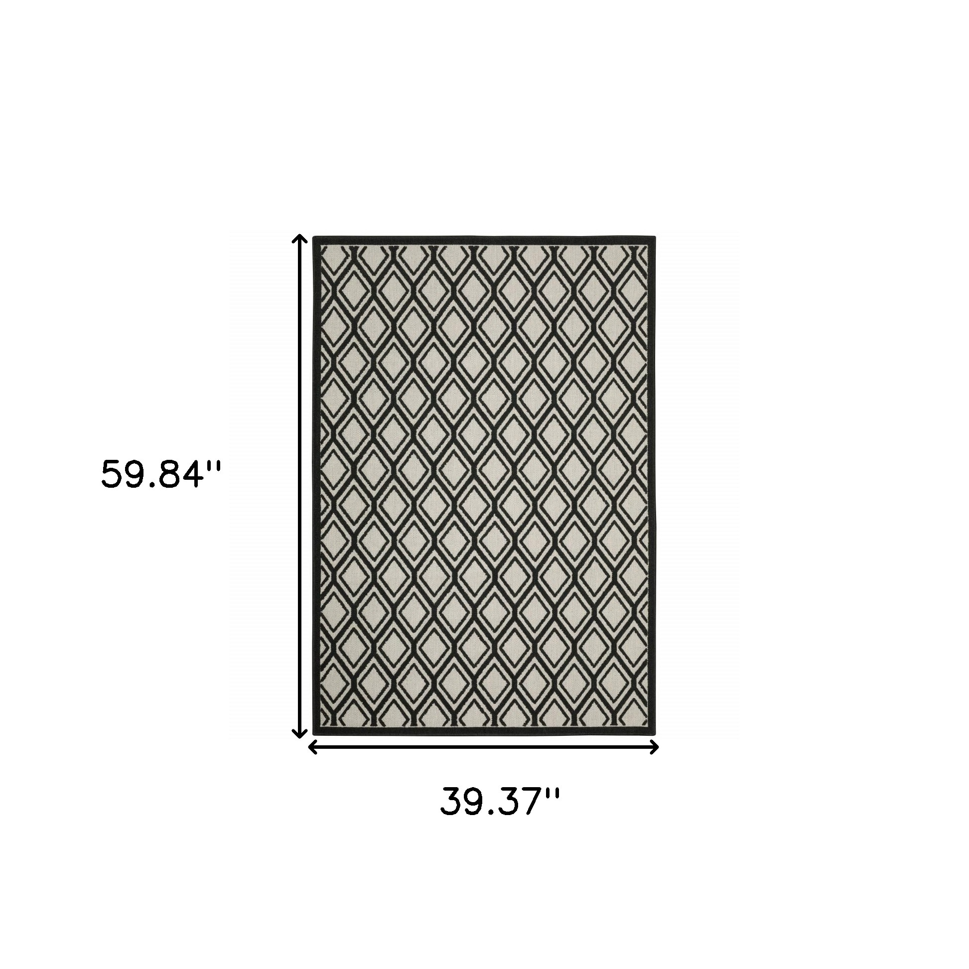 This 3-foot x 5-foot beige and black geometric stain resistant indoor outdoor area rug, is a great way to add warmth to a room. This rectangle shaped rug features a geometric design in beige and black to give it visual interest. A classic shape marries with good looking design for your space Ideal for spaces with kids and pets, this rug is stain resistant to help repel stains and spilled liquids. Place this area rug against a hardwood or tile floor and it will enliven your living space with style and sophistication. 0.15-inch H x 39.37-inch W x 59.84-inch D