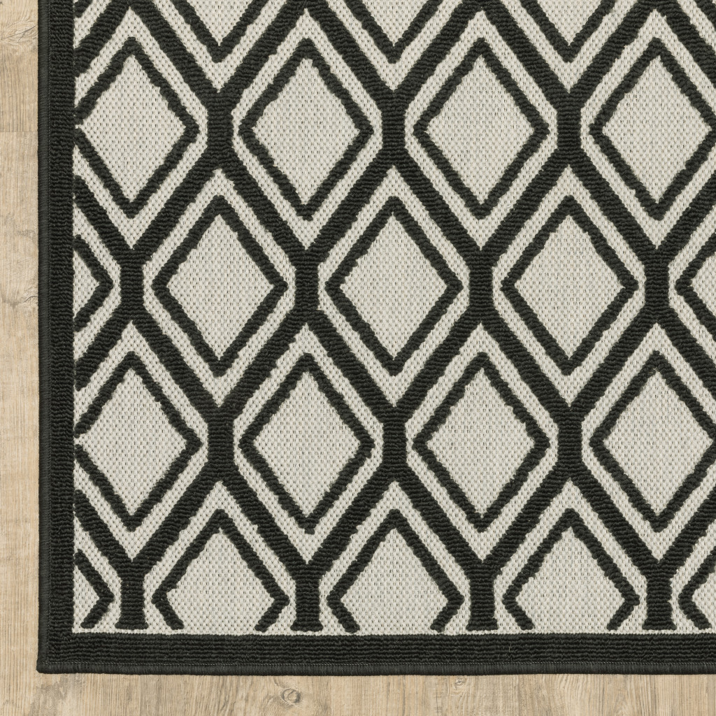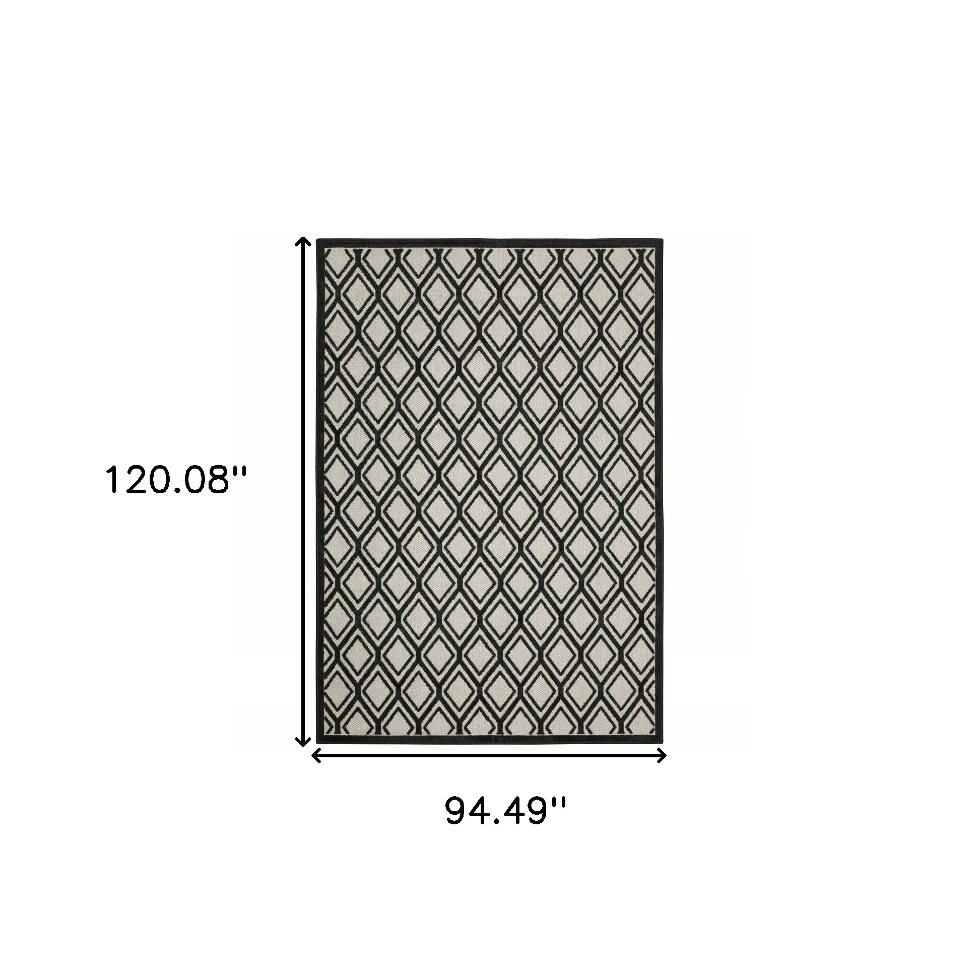 Add great coloration and comfortable texture to your space with this 8-foot x 10-foot beige and black geometric stain resistant indoor outdoor area rug. This rectangle shaped rug features a geometric design in beige and black to give it visual interest. A classic shape marries with good looking design for your space Ideal for spaces with kids and pets, this rug is stain resistant to help repel stains and spilled liquids. Place this area rug against a hardwood or tile floor and it will enliven your living space with style and sophistication. 0.15-inch H x 94.49-inch W x 120.08-inch D