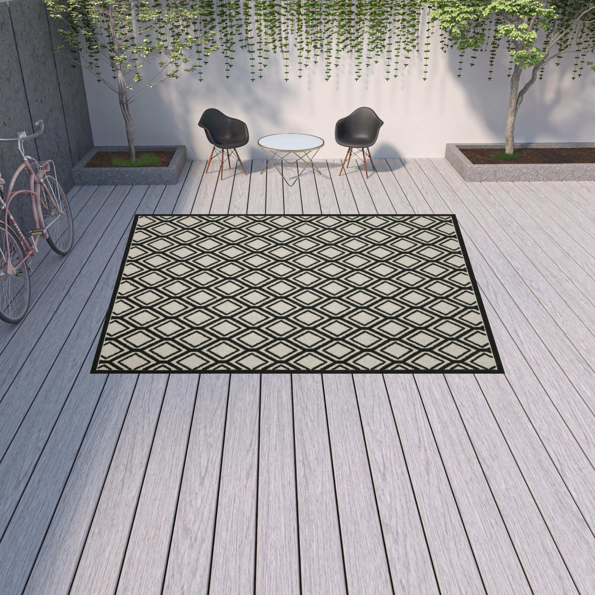 Add some artistry to your room with this 10-foot x 13-foot beige and black geometric stain resistant indoor outdoor area rug. This rectangle shaped rug features a geometric design in beige and black to give it visual interest. A classic shape marries with good looking design for your space Ideal for spaces with kids and pets, this rug is stain resistant to help repel stains and spilled liquids. Area Rugs help to give warmth and sense of home to your space. 0.15-inch H x 118.11-inch W x 153.54-inch D