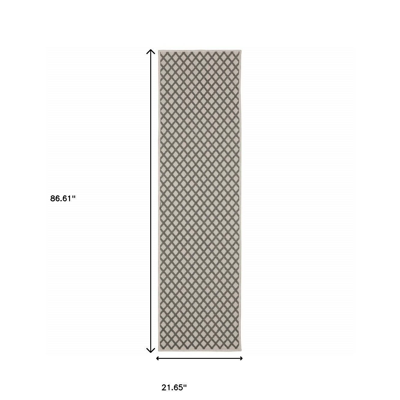 This 2-foot x 7-foot beige geometric stain resistant indoor outdoor area rug, is a great way to add warmth to a room. This rectangle shaped rug features a geometric design in beige to give it visual interest. A classic shape marries with good looking design for your space Ideal for spaces with kids and pets, this rug is stain resistant to help repel stains and spilled liquids. Area Rugs help to give warmth and sense of home to your space. 0.15-inch H x 21.65-inch W x 86.61-inch D