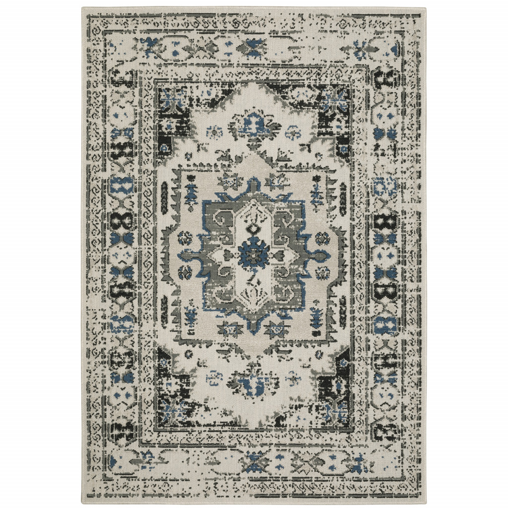 Set an inviting tone in your space with this 7-foot x 9-foot blue and beige oriental stain resistant indoor outdoor area rug. This rectangle shaped rug features a oriental design in blue and beige to give it visual interest. A classic shape marries with good looking design for your space Ideal for spaces with kids and pets, this rug is stain resistant to help repel stains and spilled liquids. Area Rugs help to give warmth and sense of home to your space. 0.15-inch H x 78.74-inch W x 110.24-inch D
