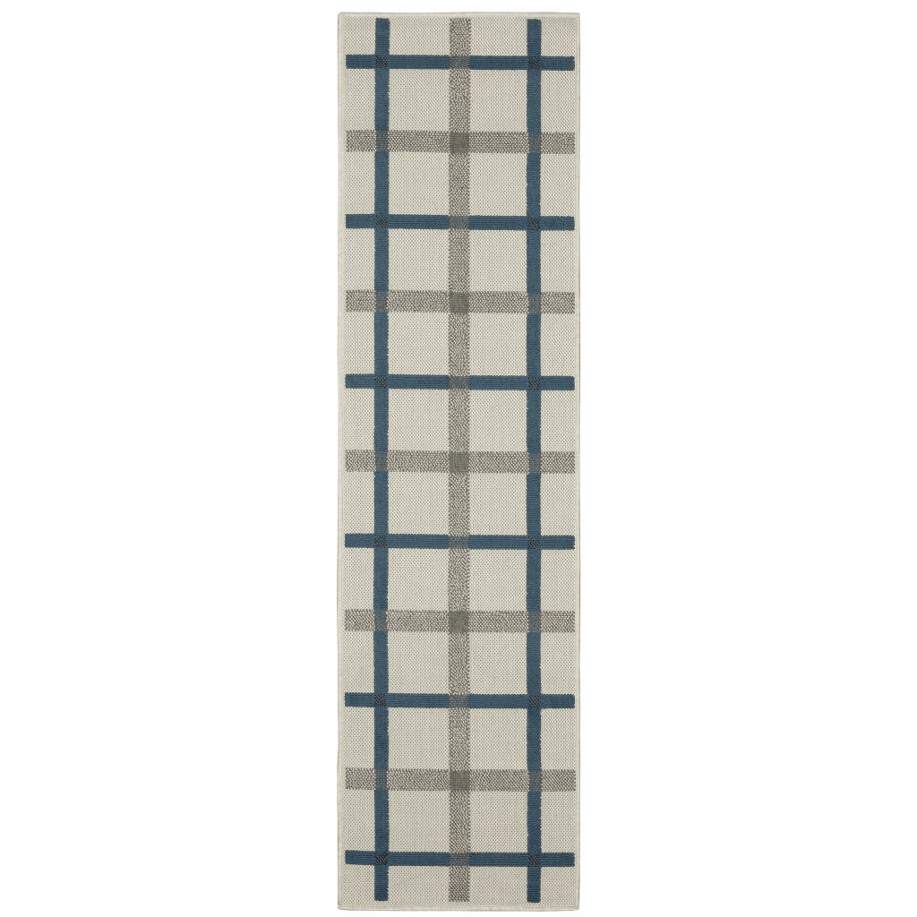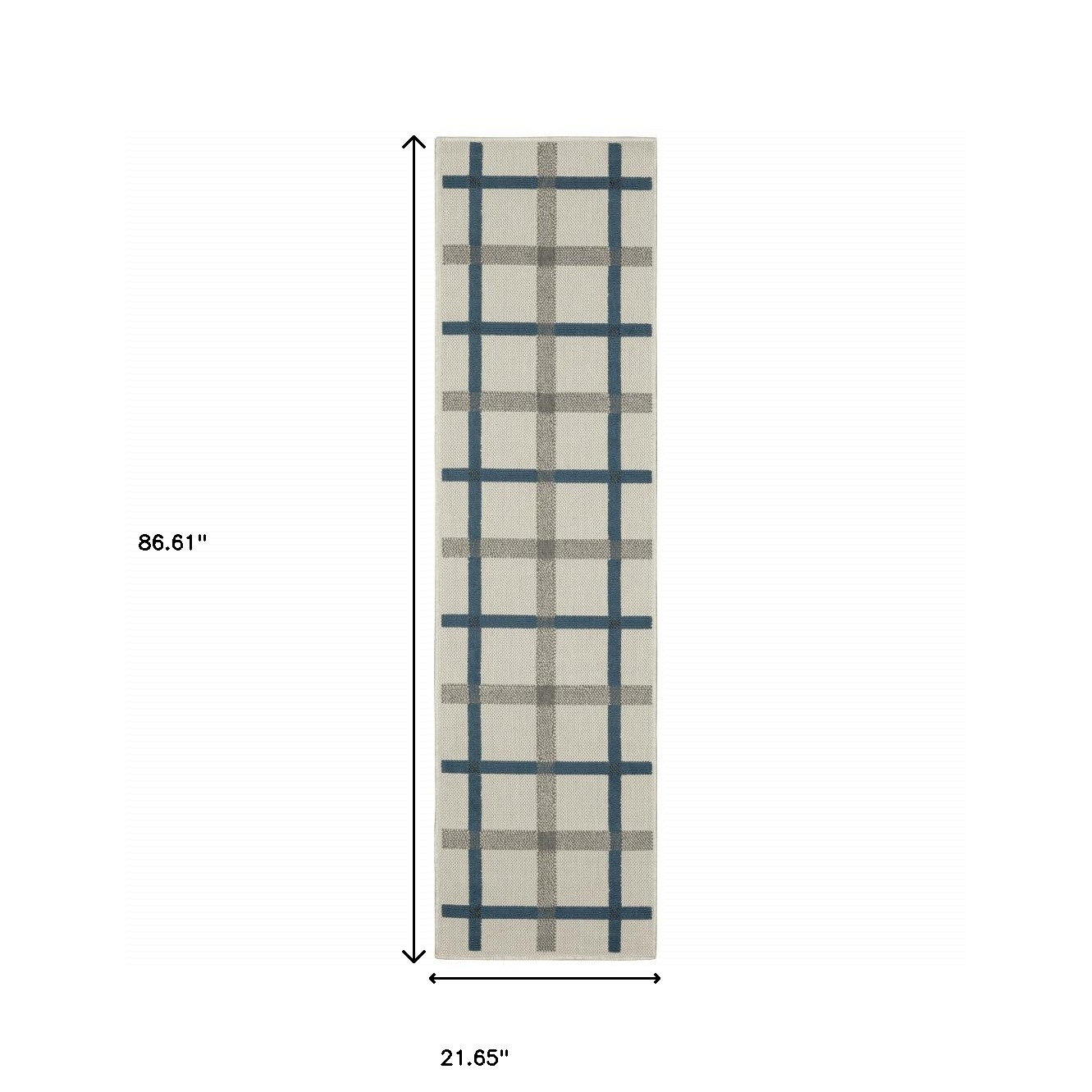 Set an inviting tone in your space with this 2-foot x 7-foot blue and beige geometric stain resistant indoor outdoor area rug. This rectangle shaped rug features a geometric design in blue and beige to give it visual interest. A classic shape marries with good looking design for your space Ideal for spaces with kids and pets, this rug is stain resistant to help repel stains and spilled liquids. Area Rugs help to give warmth and sense of home to your space. 0.15-inch H x 21.65-inch W x 86.61-inch D