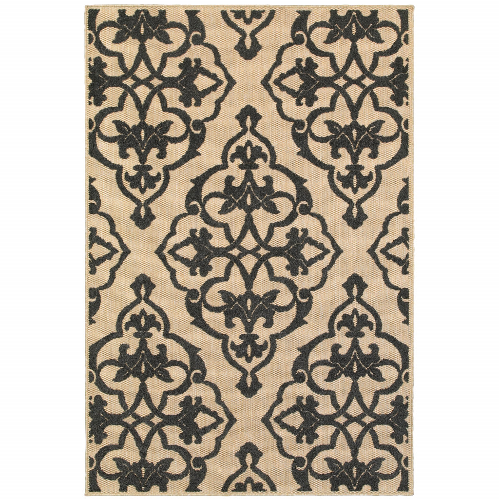 This 4-foot x 5-foot beige and black oriental stain resistant indoor outdoor area rug, is a great way to add warmth to a room. This rectangle shaped rug features a oriental design in beige and black to give it visual interest. A classic shape marries with good looking design for your space Ideal for spaces with kids and pets, this rug is stain resistant to help repel stains and spilled liquids. Place this area rug against a hardwood or tile floor and it will enliven your living space with style and sophistication. 0.07-inch H x 46.06-inch W x 64.96-inch D