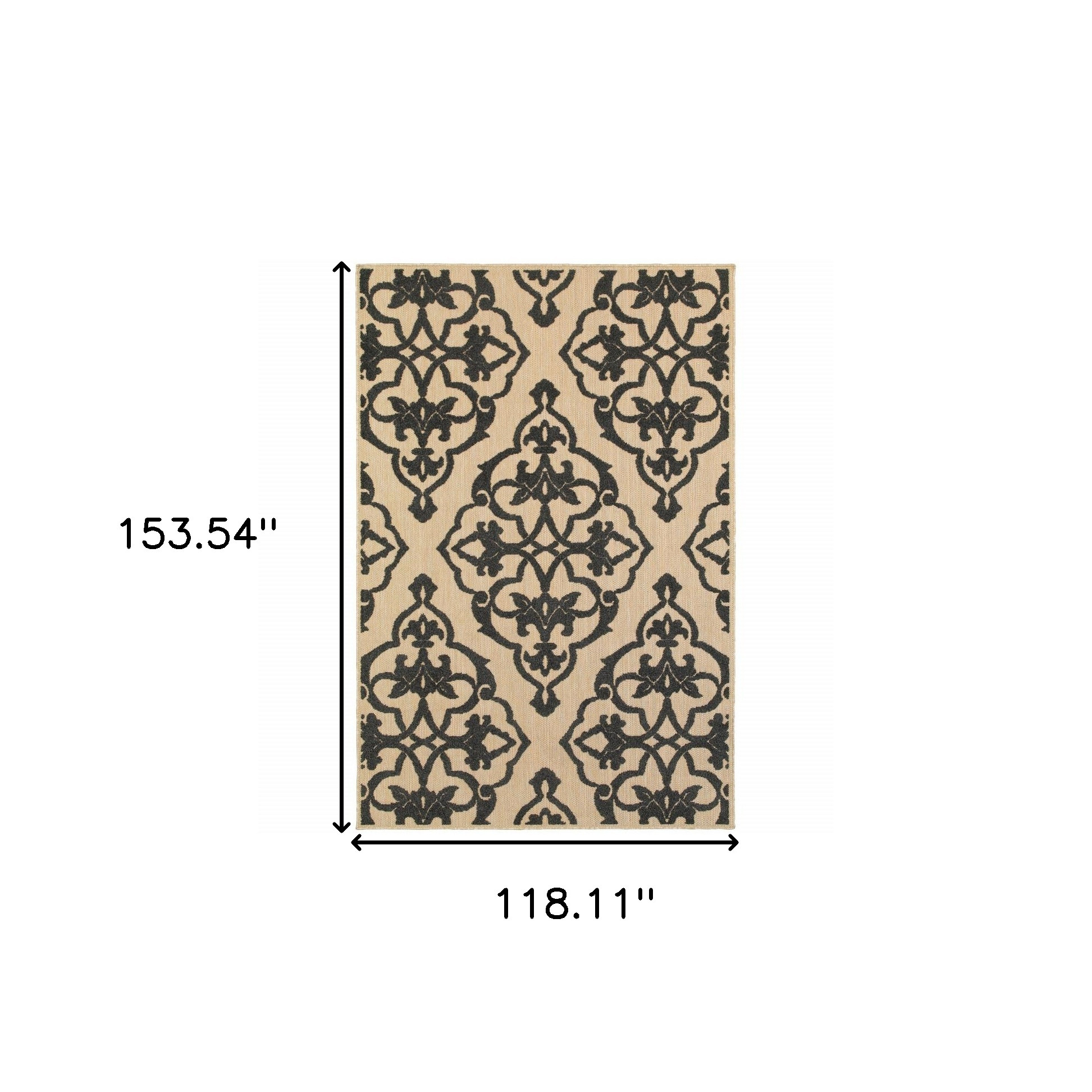 This 10-foot x 13-foot beige and black oriental stain resistant indoor outdoor area rug, is a great way to add warmth to a room. This rectangle shaped rug features a oriental design in beige and black to give it visual interest. A classic shape marries with good looking design for your space Ideal for spaces with kids and pets, this rug is stain resistant to help repel stains and spilled liquids. Area Rugs help to give warmth and sense of home to your space. 0.07-inch H x 118.11-inch W x 153.54-inch D