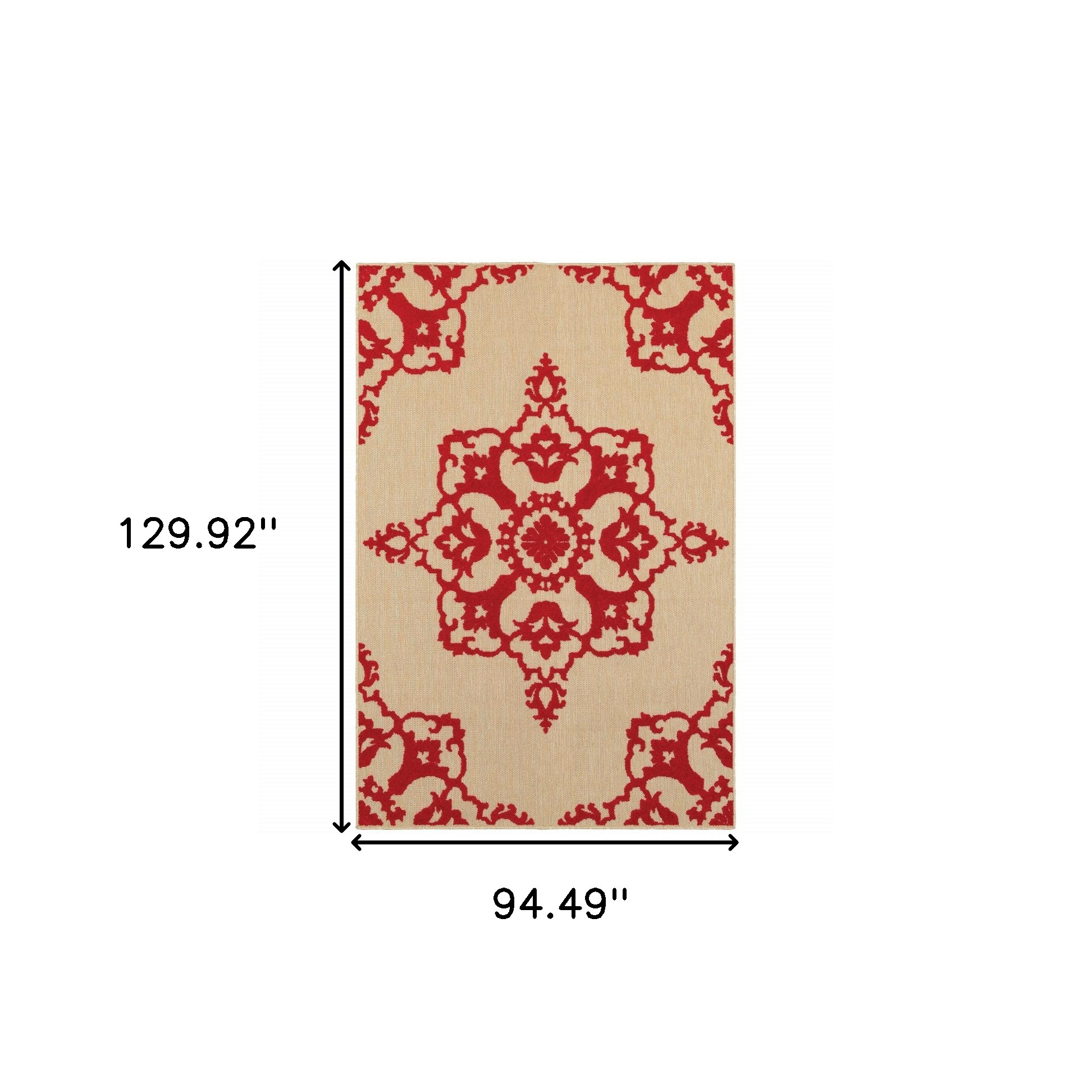 Add great coloration and comfortable texture to your space with this 8-foot x 11-foot red oriental stain resistant indoor outdoor area rug. This rectangle shaped rug features a oriental design in red to give it visual interest. A classic shape marries with good looking design for your space Ideal for spaces with kids and pets, this rug is stain resistant to help repel stains and spilled liquids. Area Rugs help to give warmth and sense of home to your space. 0.07-inch H x 94.49-inch W x 129.92-inch D