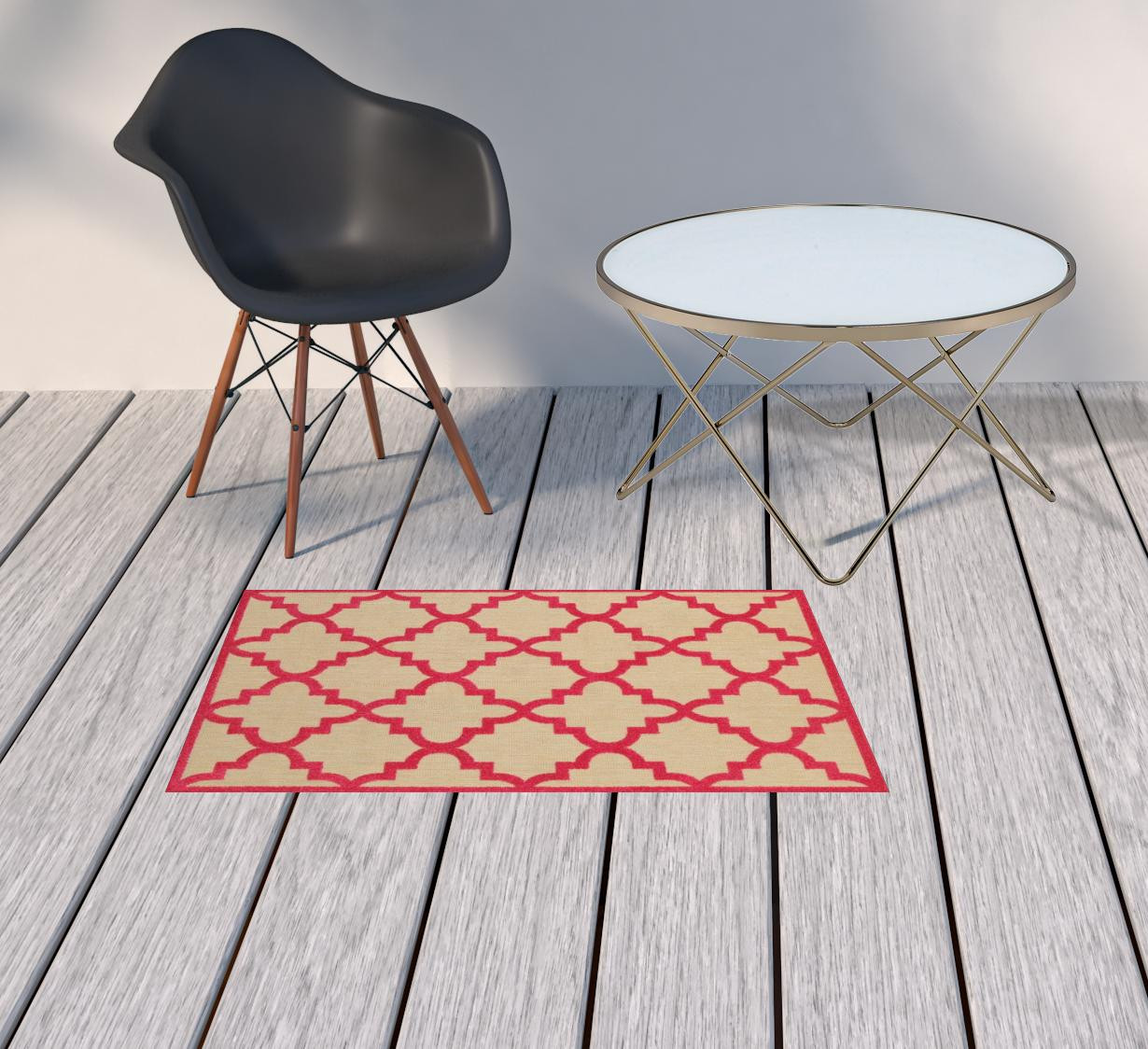 Add some artistry to your room with this 2-foot x 3-foot pink geometric stain resistant indoor outdoor area rug. This rectangle shaped rug features a geometric design in pink to give it visual interest. A classic shape marries with good looking design for your space Ideal for spaces with kids and pets, this rug is stain resistant to help repel stains and spilled liquids. Place this area rug against a hardwood or tile floor and it will enliven your living space with style and sophistication. 0.07-inch H x 22.05-inch W x 39.37-inch D