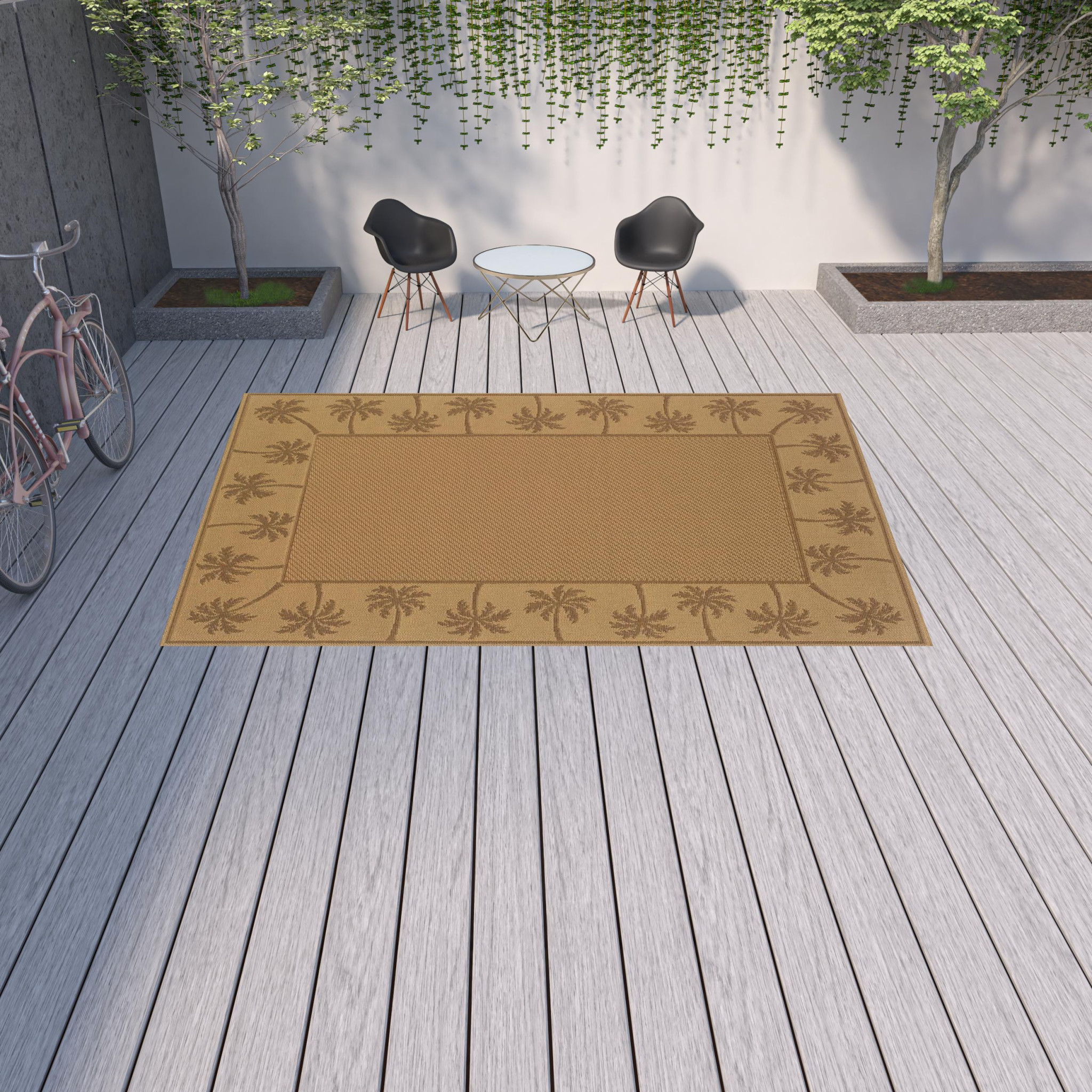 This 9-foot x 13-foot beige stain resistant indoor outdoor area rug, is a great way to add warmth to a room. Ideal for spaces with kids and pets, this rug is stain resistant to help repel stains and spilled liquids. Place this area rug against a hardwood or tile floor and it will enliven your living space with style and sophistication. 0.2-inch H x 101.97-inch W x 155.91-inch D