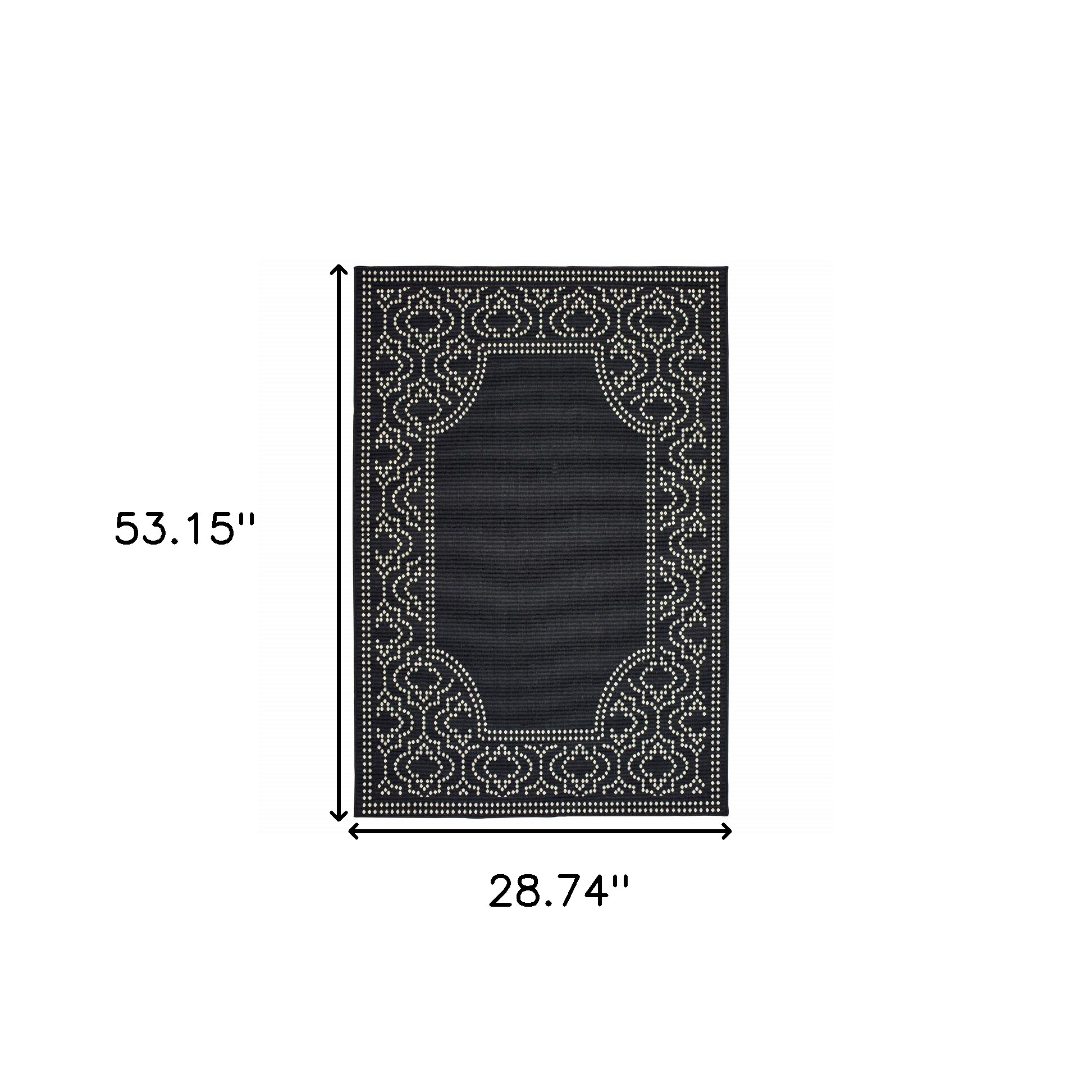 This 2-foot x 4-foot black and ivory stain resistant indoor outdoor area rug, is a great way to add warmth to a room. Ideal for spaces with kids and pets, this rug is stain resistant to help repel stains and spilled liquids. Place this area rug against a hardwood or tile floor and it will enliven your living space with style and sophistication. 0.07-inch H x 28.74-inch W x 53.15-inch D