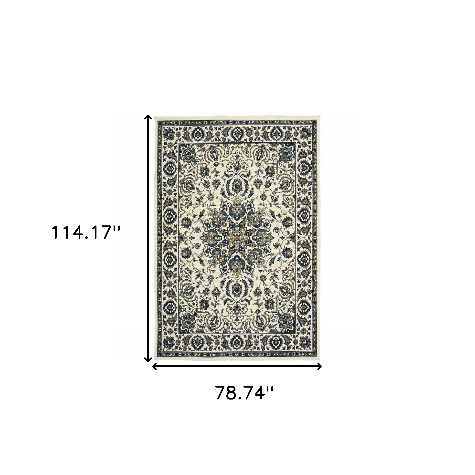 Add some artistry to your room with this 7-foot x 10-foot ivory and blue oriental stain resistant indoor outdoor area rug. This rectangle shaped rug features a oriental design in ivory and blue to give it visual interest. A classic shape marries with good looking design for your space Ideal for spaces with kids and pets, this rug is stain resistant to help repel stains and spilled liquids. Place this area rug against a hardwood or tile floor and it will enliven your living space with style and sophistication. 0.07-inch H x 78.74-inch W x 114.17-inch D