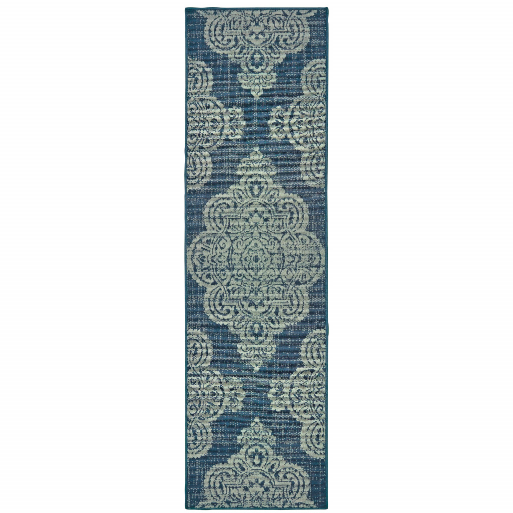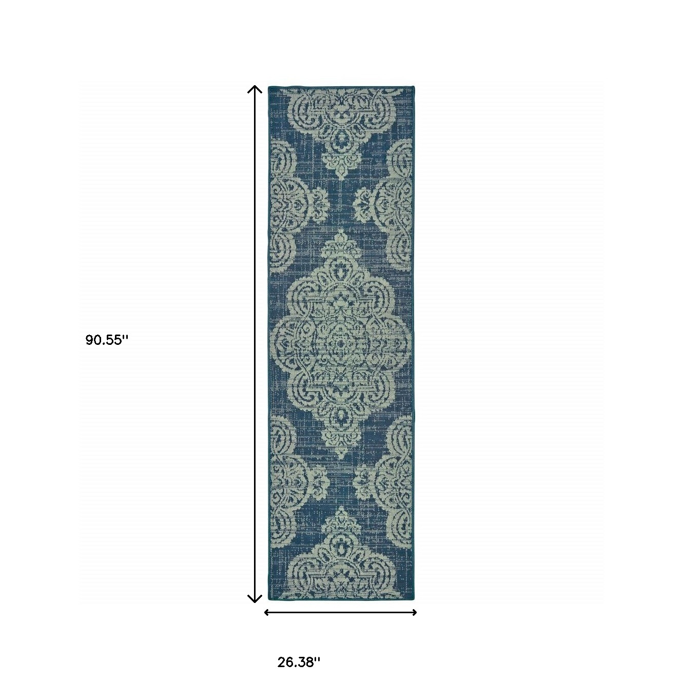 This 2-foot x 8-foot blue oriental stain resistant indoor outdoor area rug, is a great way to add warmth to a room. This rectangle shaped rug features a oriental design in blue to give it visual interest. A classic shape marries with good looking design for your space Ideal for spaces with kids and pets, this rug is stain resistant to help repel stains and spilled liquids. Place this area rug against a hardwood or tile floor and it will enliven your living space with style and sophistication. 0.07-inch H x 26.38-inch W x 90.55-inch D