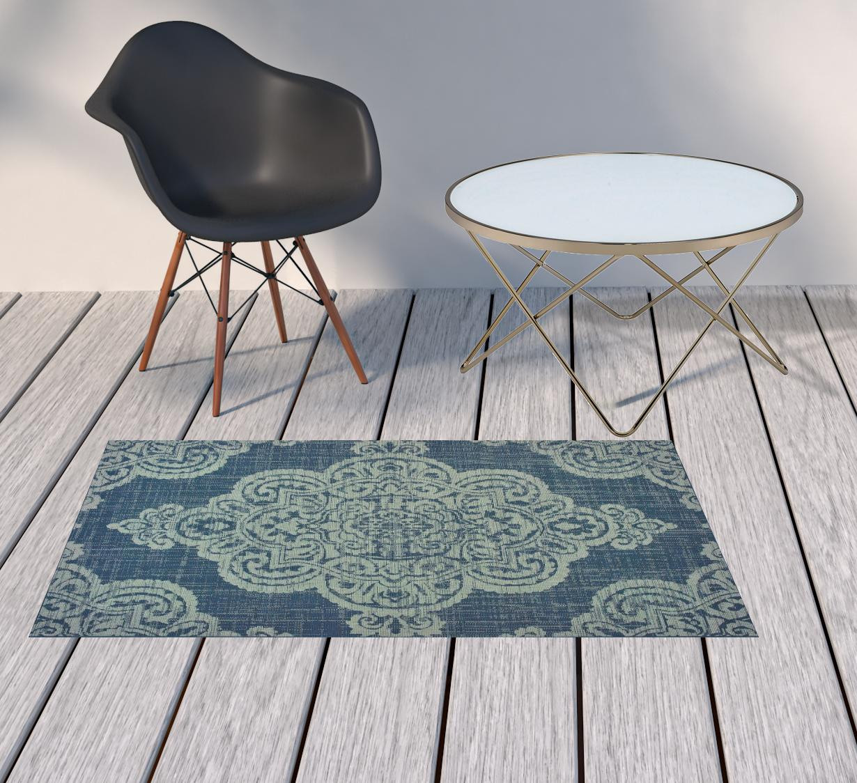 Set an inviting tone in your space with this 2-foot x 4-foot blue oriental stain resistant indoor outdoor area rug. This rectangle shaped rug features a oriental design in blue to give it visual interest. A classic shape marries with good looking design for your space Ideal for spaces with kids and pets, this rug is stain resistant to help repel stains and spilled liquids. Place this area rug against a hardwood or tile floor and it will enliven your living space with style and sophistication. 0.07-inch H x 28.74-inch W x 53.15-inch D