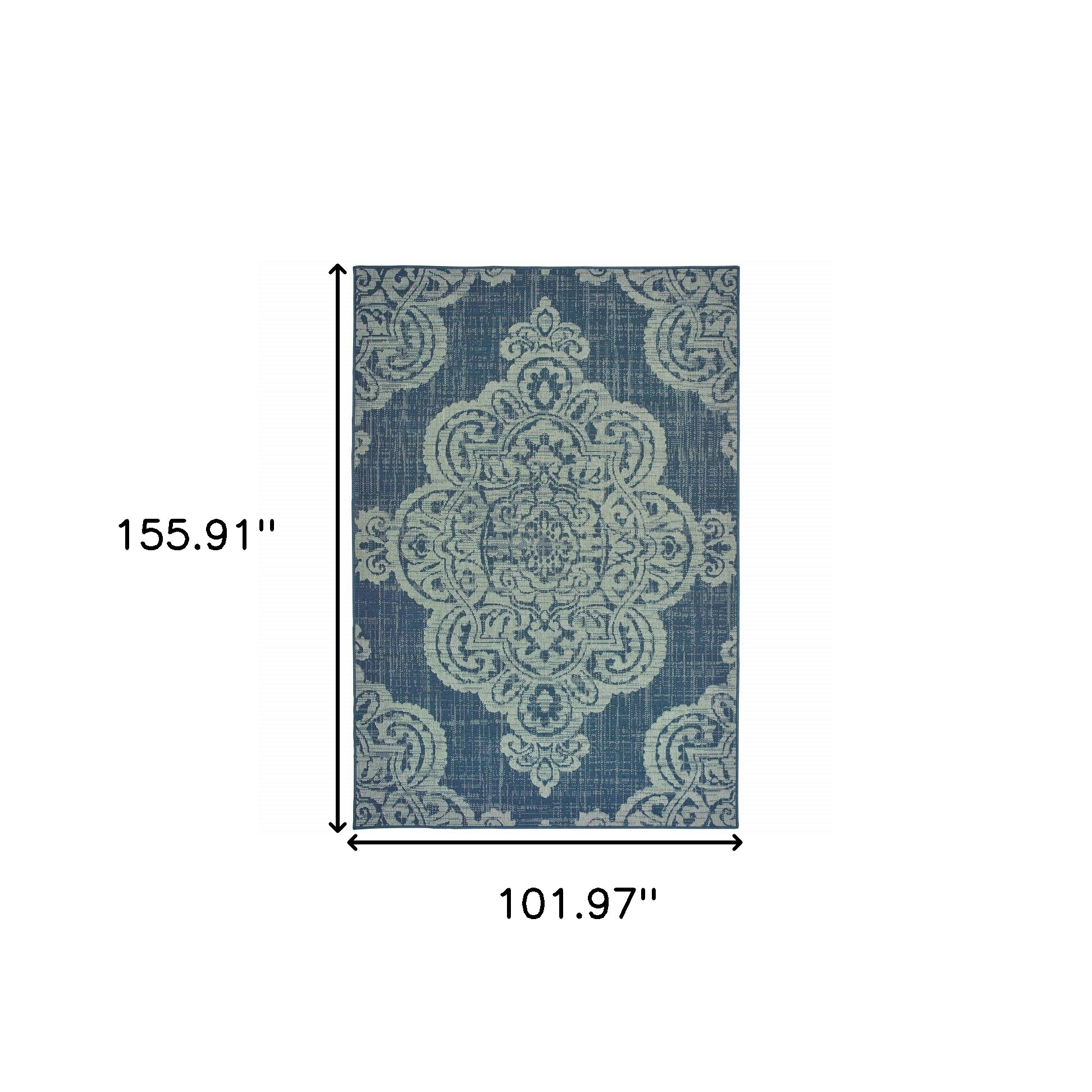 Set an inviting tone in your space with this 9-foot x 13-foot blue oriental stain resistant indoor outdoor area rug. This rectangle shaped rug features a oriental design in blue to give it visual interest. A classic shape marries with good looking design for your space Ideal for spaces with kids and pets, this rug is stain resistant to help repel stains and spilled liquids. Area Rugs help to give warmth and sense of home to your space. 0.07-inch H x 101.97-inch W x 155.91-inch D