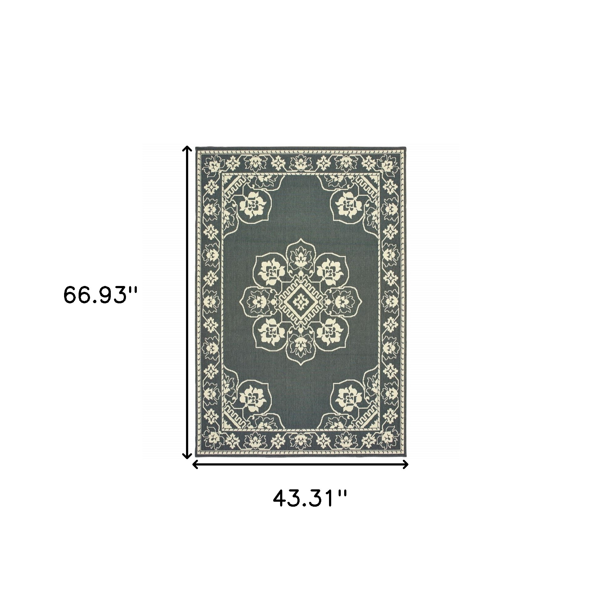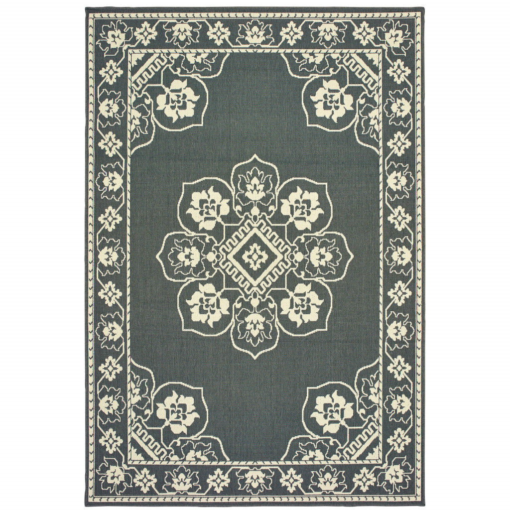 Set an inviting tone in your space with this 4-foot x 6-foot gray and ivory oriental stain resistant indoor outdoor area rug. This rectangle shaped rug features a oriental design in gray and ivory to give it visual interest. A classic shape marries with good looking design for your space Ideal for spaces with kids and pets, this rug is stain resistant to help repel stains and spilled liquids. Place this area rug against a hardwood or tile floor and it will enliven your living space with style and sophistication. 0.07-inch H x 43.31-inch W x 66.93-inch D