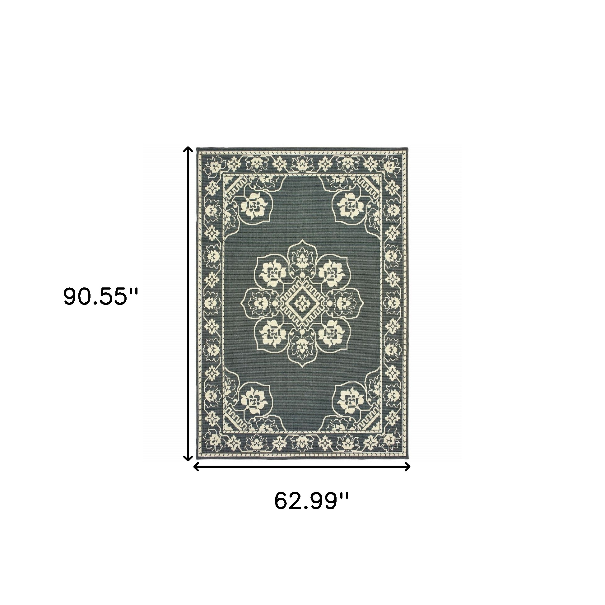 Set an inviting tone in your space with this 5-foot x 8-foot gray and ivory oriental stain resistant indoor outdoor area rug. This rectangle shaped rug features a oriental design in gray and ivory to give it visual interest. A classic shape marries with good looking design for your space Ideal for spaces with kids and pets, this rug is stain resistant to help repel stains and spilled liquids. Area Rugs help to give warmth and sense of home to your space. 0.11-inch H x 62.99-inch W x 90.55-inch D
