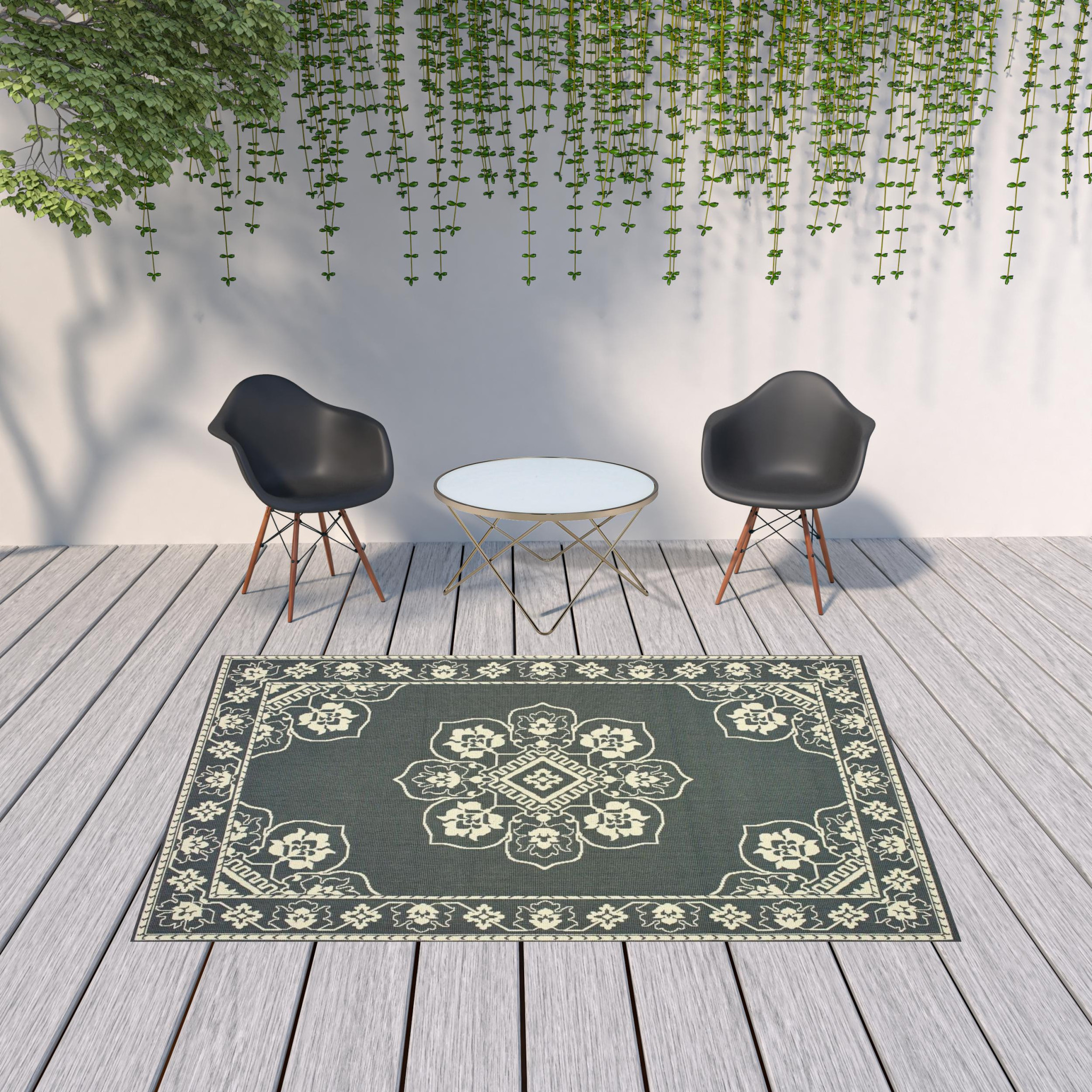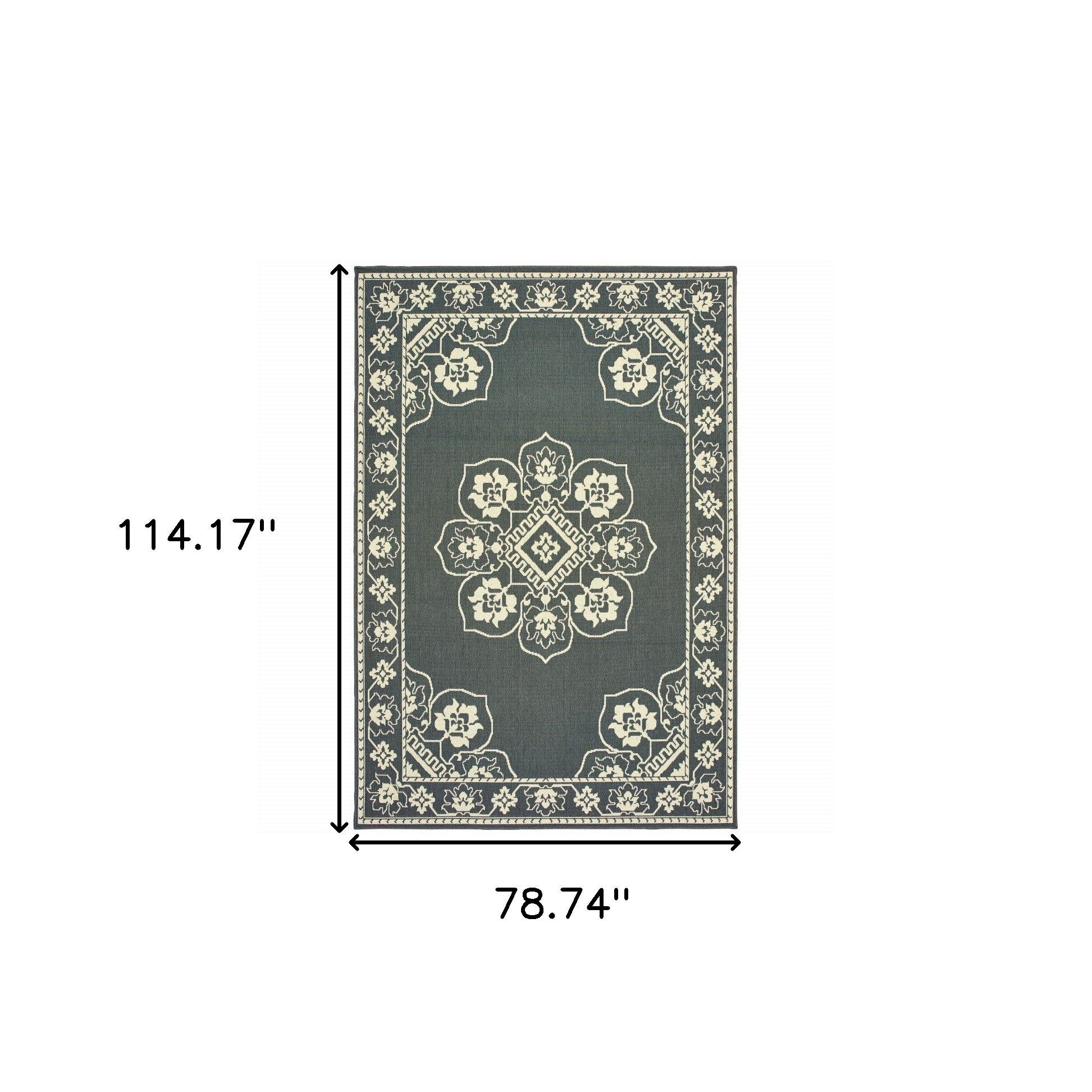 This 7-foot x 10-foot gray and ivory oriental stain resistant indoor outdoor area rug, is a great way to add warmth to a room. This rectangle shaped rug features a oriental design in gray and ivory to give it visual interest. A classic shape marries with good looking design for your space Ideal for spaces with kids and pets, this rug is stain resistant to help repel stains and spilled liquids. Area Rugs help to give warmth and sense of home to your space. 0.07-inch H x 78.74-inch W x 114.17-inch D