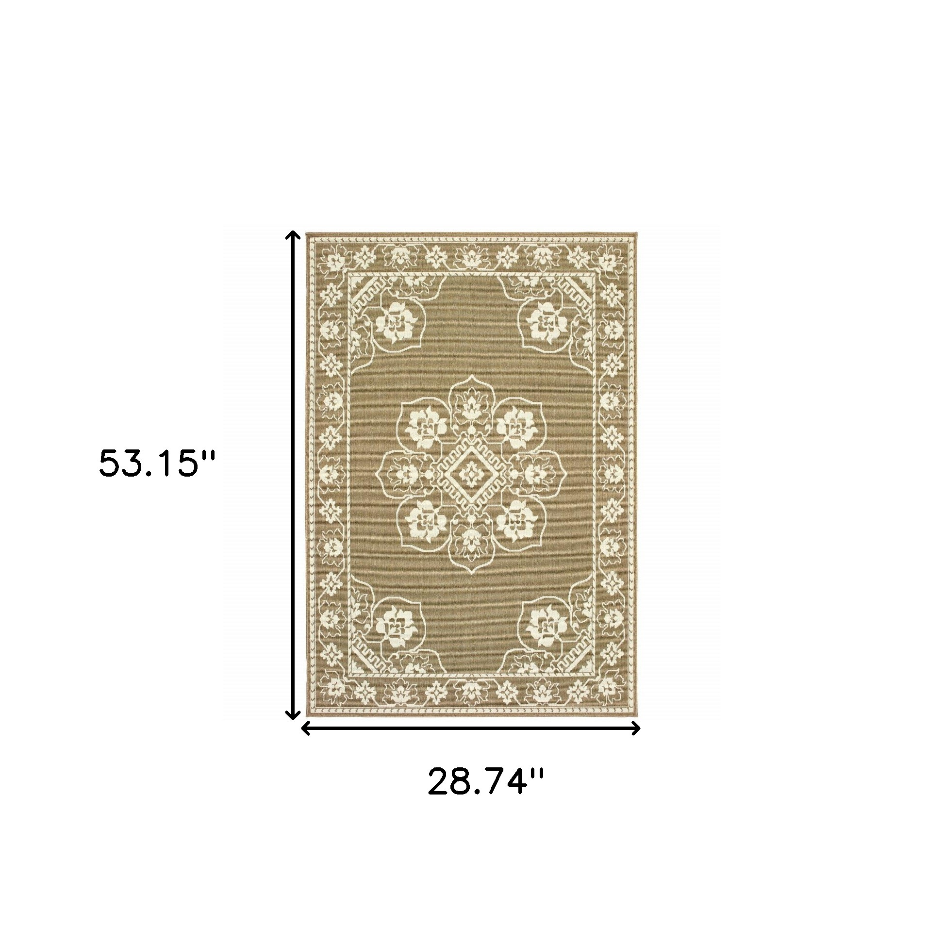 Add great coloration and comfortable texture to your space with this 2-foot x 4-foot tan oriental stain resistant indoor outdoor area rug. This rectangle shaped rug features a oriental design in tan to give it visual interest. A classic shape marries with good looking design for your space Ideal for spaces with kids and pets, this rug is stain resistant to help repel stains and spilled liquids. Place this area rug against a hardwood or tile floor and it will enliven your living space with style and sophistication. 0.11-inch H x 28.74-inch W x 53.15-inch D
