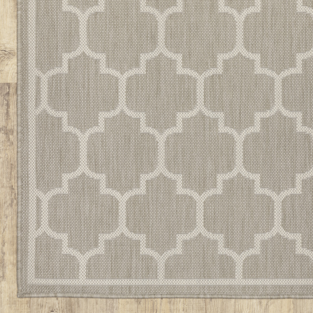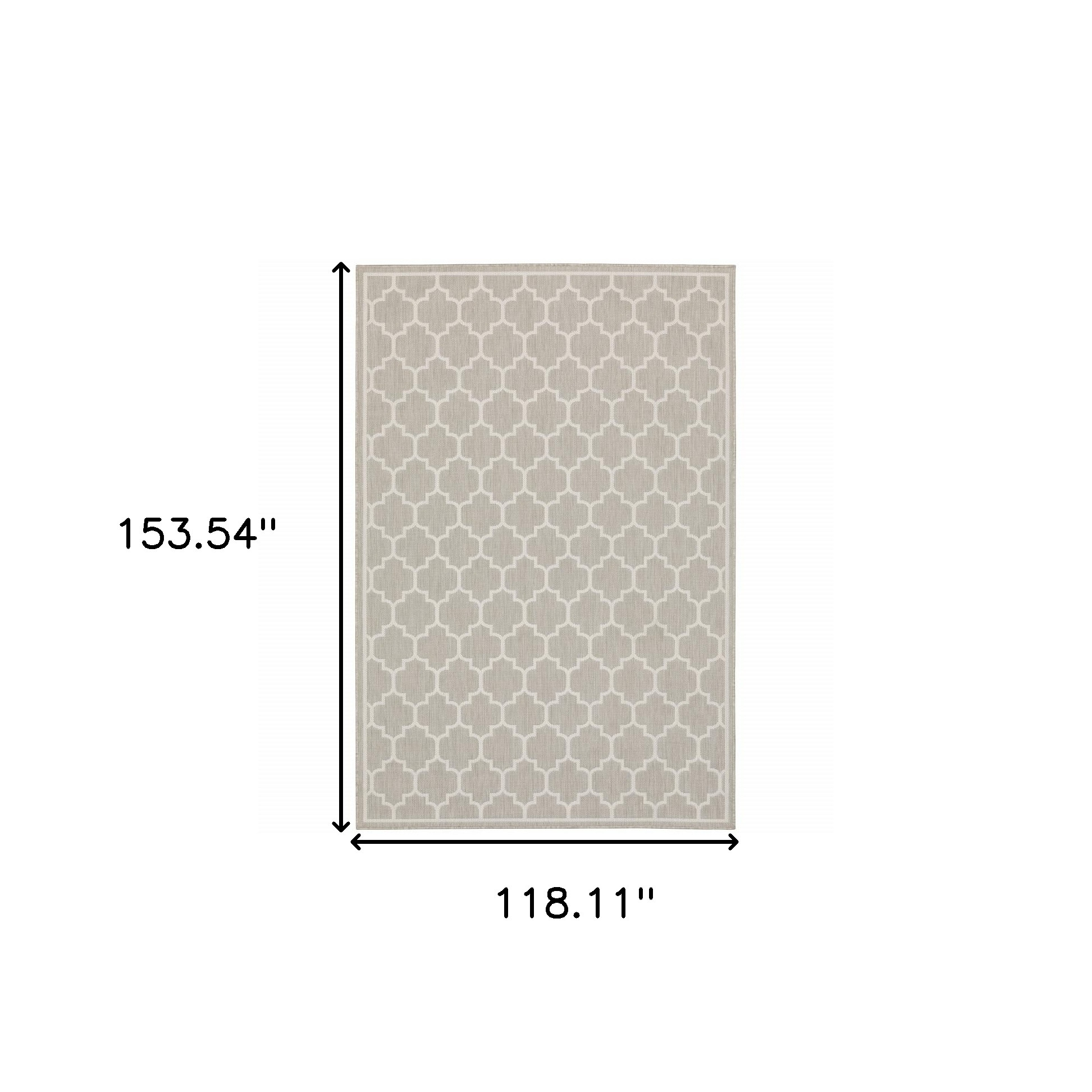 This 10-foot x 13-foot gray and ivory geometric stain resistant indoor outdoor area rug, is a great way to add warmth to a room. This rectangle shaped rug features a geometric design in gray and ivory to give it visual interest. A classic shape marries with good looking design for your space Ideal for spaces with kids and pets, this rug is stain resistant to help repel stains and spilled liquids. Area Rugs help to give warmth and sense of home to your space. 0.07-inch H x 118.11-inch W x 153.54-inch D