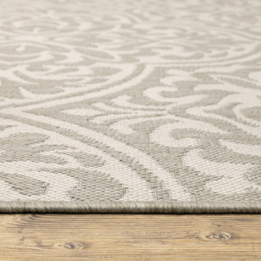 This 3-foot x 5-foot gray and ivory floral stain resistant indoor outdoor area rug, is a great way to add warmth to a room. This rectangle shaped rug features a floral design in gray and ivory to give it visual interest. A classic shape marries with good looking design for your space Ideal for spaces with kids and pets, this rug is stain resistant to help repel stains and spilled liquids. Place this area rug against a hardwood or tile floor and it will enliven your living space with style and sophistication. 0.07-inch H x 39.37-inch W x 59.84-inch D