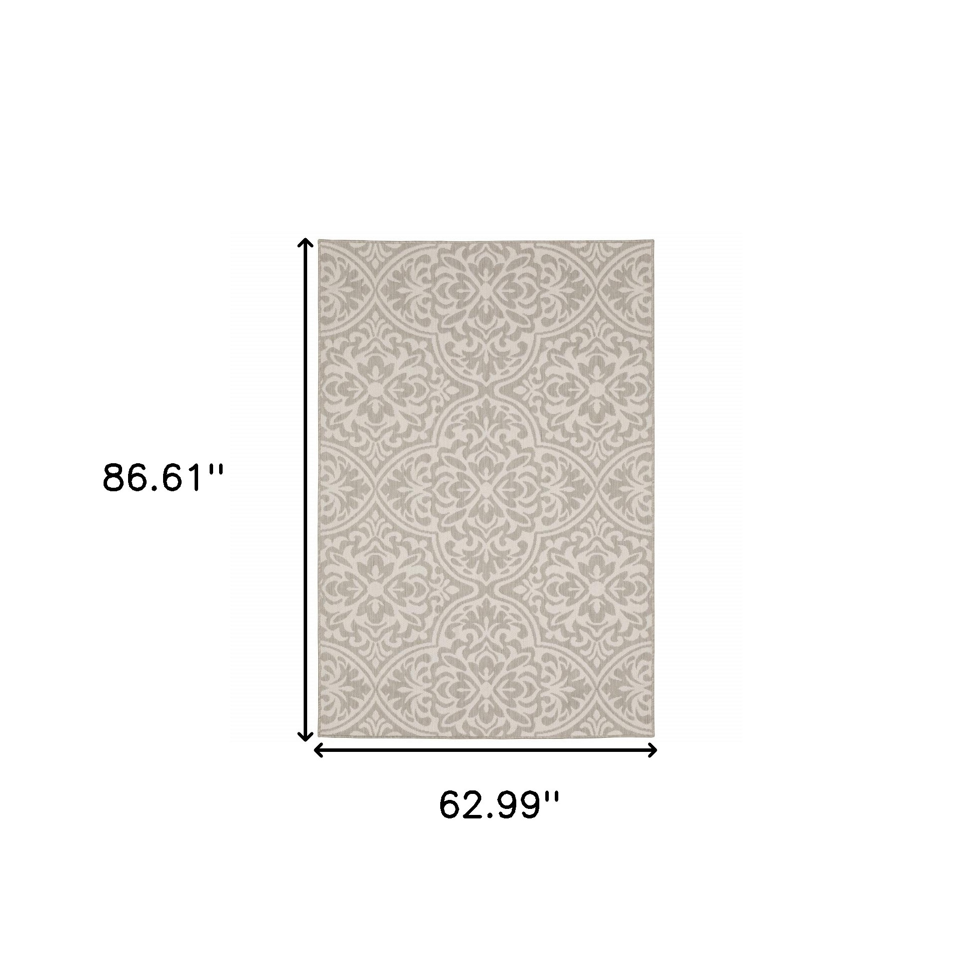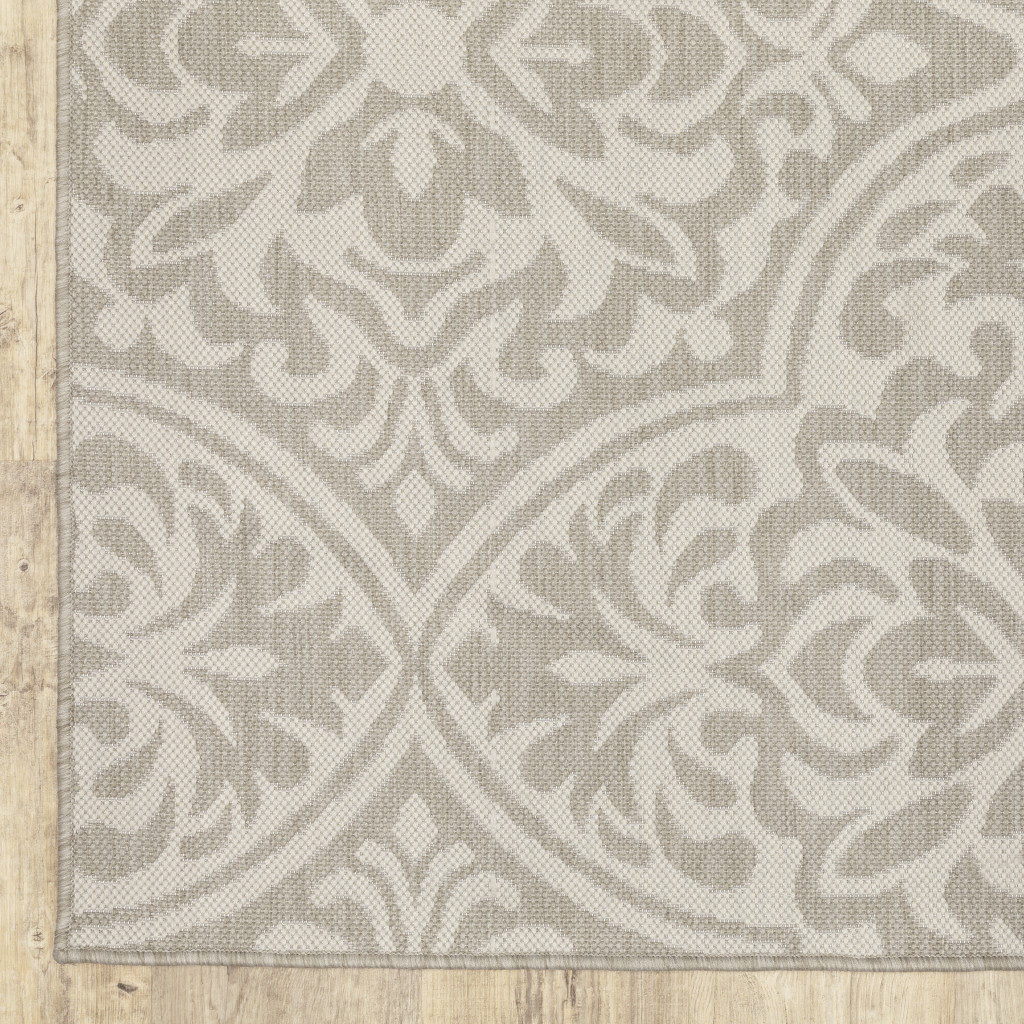 This 5-foot x 7-foot gray and ivory floral stain resistant indoor outdoor area rug, is a great way to add warmth to a room. This rectangle shaped rug features a floral design in gray and ivory to give it visual interest. A classic shape marries with good looking design for your space Ideal for spaces with kids and pets, this rug is stain resistant to help repel stains and spilled liquids. Place this area rug against a hardwood or tile floor and it will enliven your living space with style and sophistication. 0.07-inch H x 62.99-inch W x 86.61-inch D