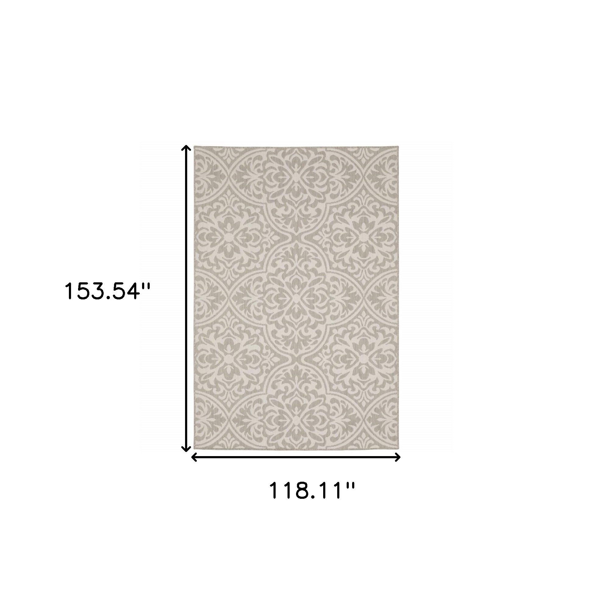 Add great coloration and comfortable texture to your space with this 10-foot x 13-foot gray and ivory floral stain resistant indoor outdoor area rug. This rectangle shaped rug features a floral design in gray and ivory to give it visual interest. A classic shape marries with good looking design for your space Ideal for spaces with kids and pets, this rug is stain resistant to help repel stains and spilled liquids. Area Rugs help to give warmth and sense of home to your space. 0.07-inch H x 118.11-inch W x 153.54-inch D
