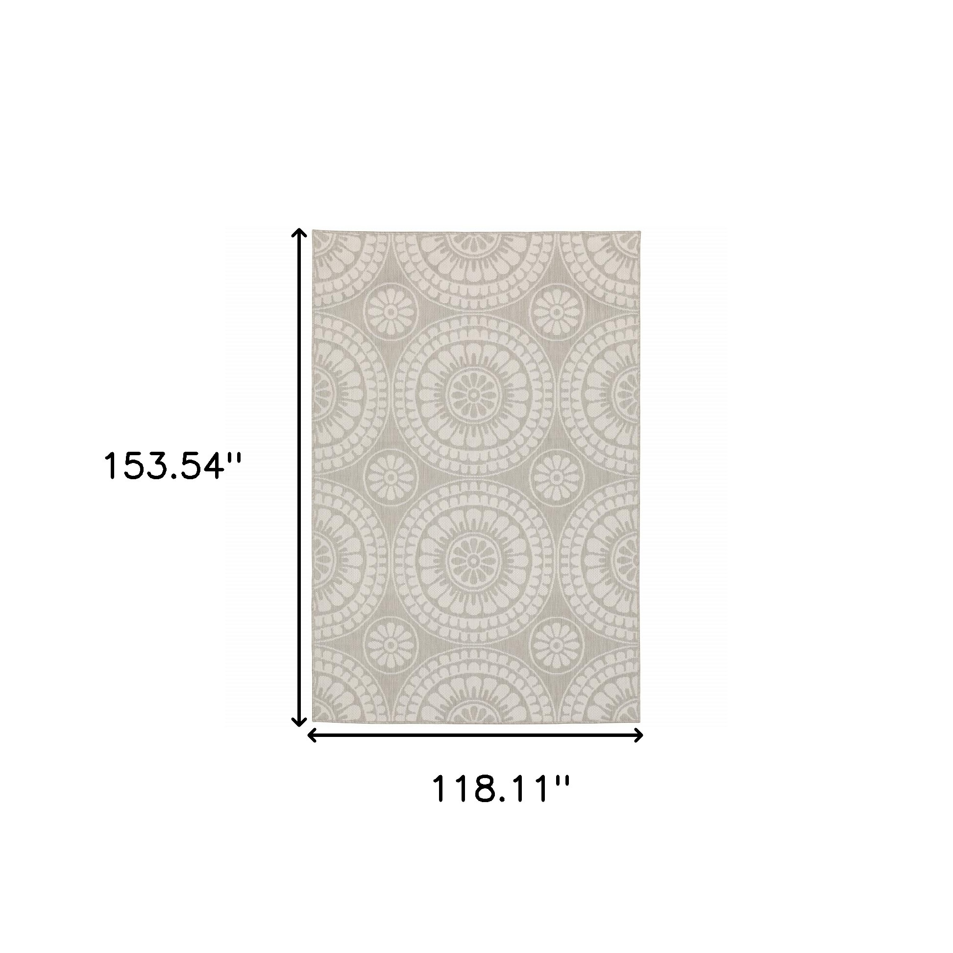 Add great coloration and comfortable texture to your space with this 10-foot x 13-foot gray and ivory geometric stain resistant indoor outdoor area rug. This rectangle shaped rug features a geometric design in gray and ivory to give it visual interest. A classic shape marries with good looking design for your space Ideal for spaces with kids and pets, this rug is stain resistant to help repel stains and spilled liquids. Area Rugs help to give warmth and sense of home to your space. 0.07-inch H x 118.11-inch W x 153.54-inch D