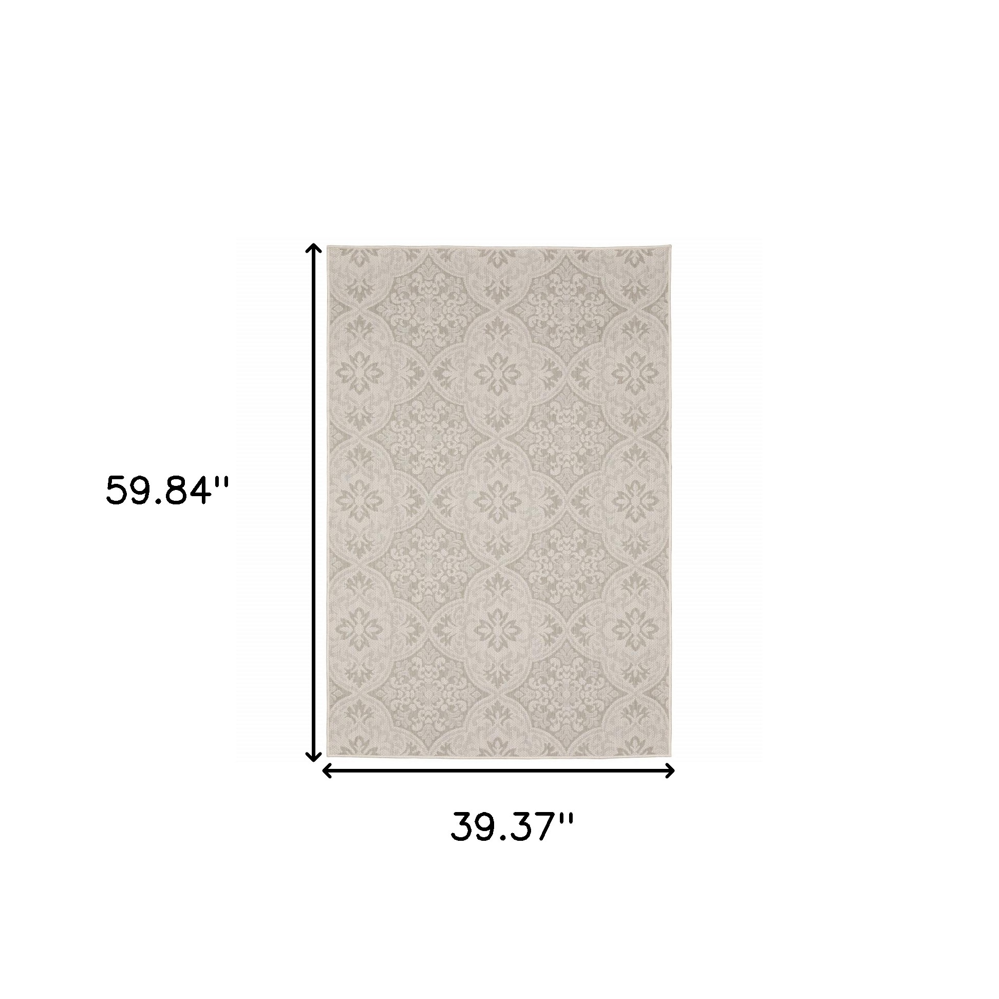 Add some artistry to your room with this 3-foot x 5-foot gray and ivory floral stain resistant indoor outdoor area rug. This rectangle shaped rug features a floral design in gray and ivory to give it visual interest. A classic shape marries with good looking design for your space Ideal for spaces with kids and pets, this rug is stain resistant to help repel stains and spilled liquids. Area Rugs help to give warmth and sense of home to your space. 0.07-inch H x 39.37-inch W x 59.84-inch D