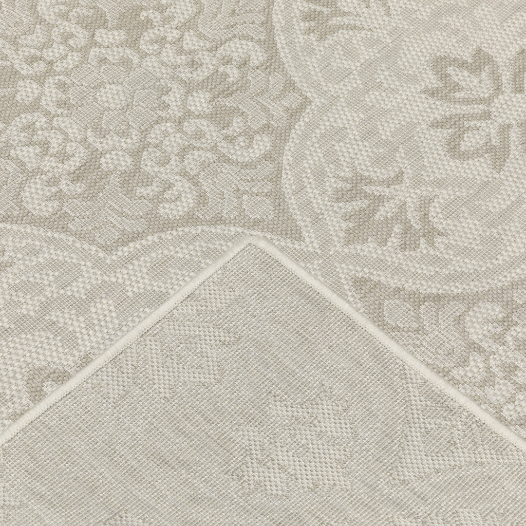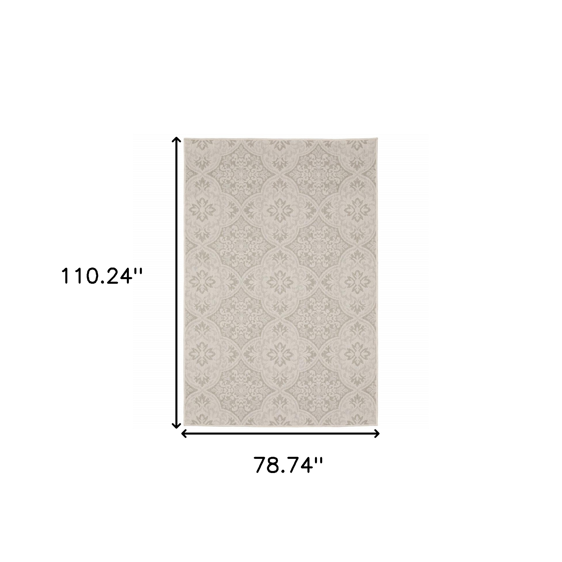 Add some artistry to your room with this 7-foot x 9-foot gray and ivory floral stain resistant indoor outdoor area rug. This rectangle shaped rug features a floral design in gray and ivory to give it visual interest. A classic shape marries with good looking design for your space Ideal for spaces with kids and pets, this rug is stain resistant to help repel stains and spilled liquids. Place this area rug against a hardwood or tile floor and it will enliven your living space with style and sophistication. 0.07-inch H x 78.74-inch W x 110.24-inch D