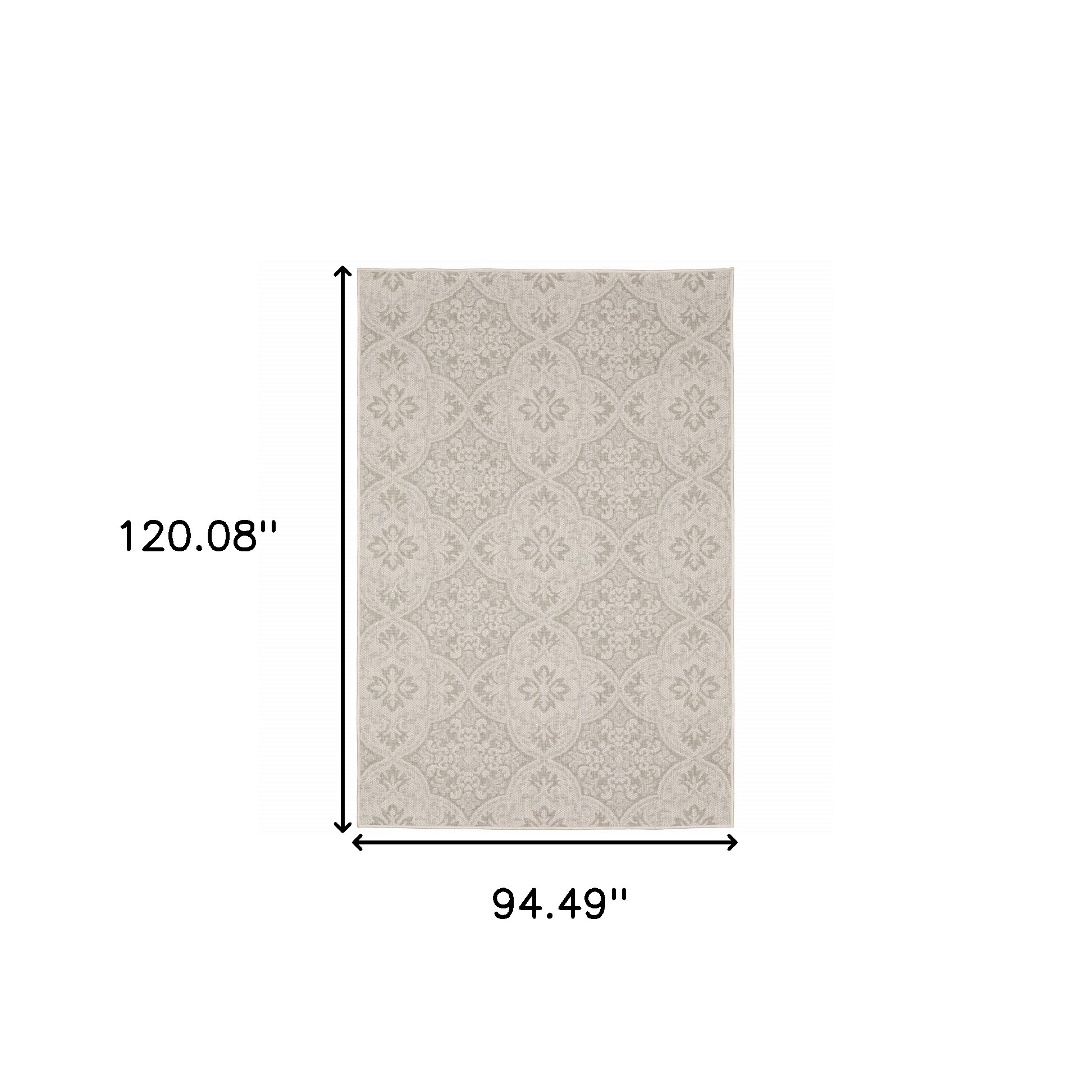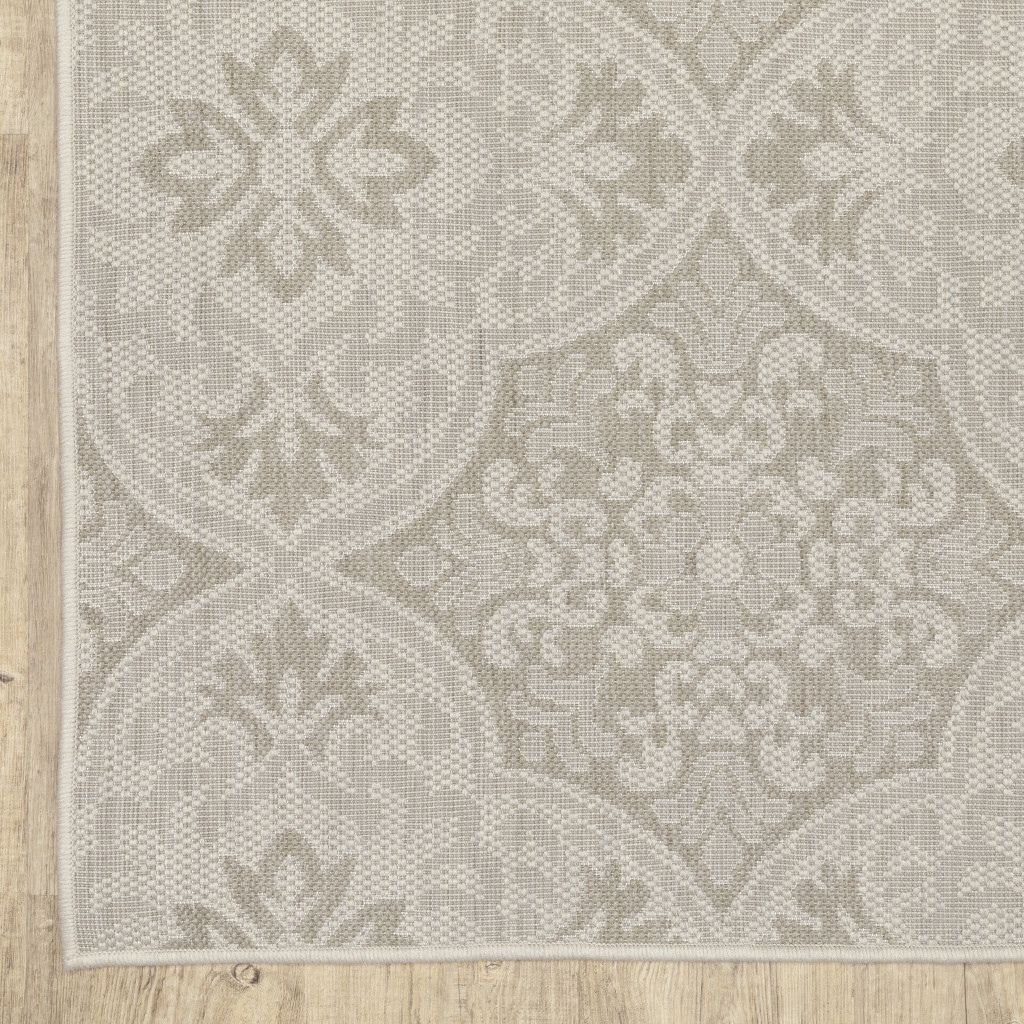 Set an inviting tone in your space with this 8-foot x 10-foot gray and ivory floral stain resistant indoor outdoor area rug. This rectangle shaped rug features a floral design in gray and ivory to give it visual interest. A classic shape marries with good looking design for your space Ideal for spaces with kids and pets, this rug is stain resistant to help repel stains and spilled liquids. Place this area rug against a hardwood or tile floor and it will enliven your living space with style and sophistication. 0.07-inch H x 94.49-inch W x 120.08-inch D