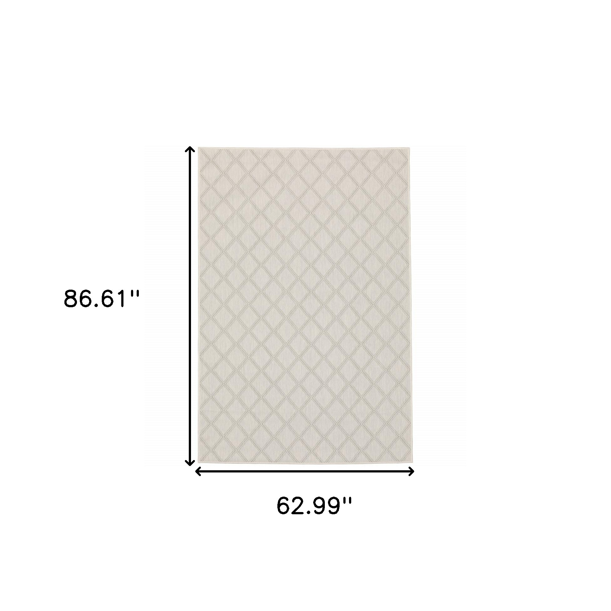 Add some artistry to your room with this 5-foot x 7-foot gray and ivory geometric stain resistant indoor outdoor area rug. This rectangle shaped rug features a geometric design in gray and ivory to give it visual interest. A classic shape marries with good looking design for your space Ideal for spaces with kids and pets, this rug is stain resistant to help repel stains and spilled liquids. Area Rugs help to give warmth and sense of home to your space. 0.07-inch H x 62.99-inch W x 86.61-inch D
