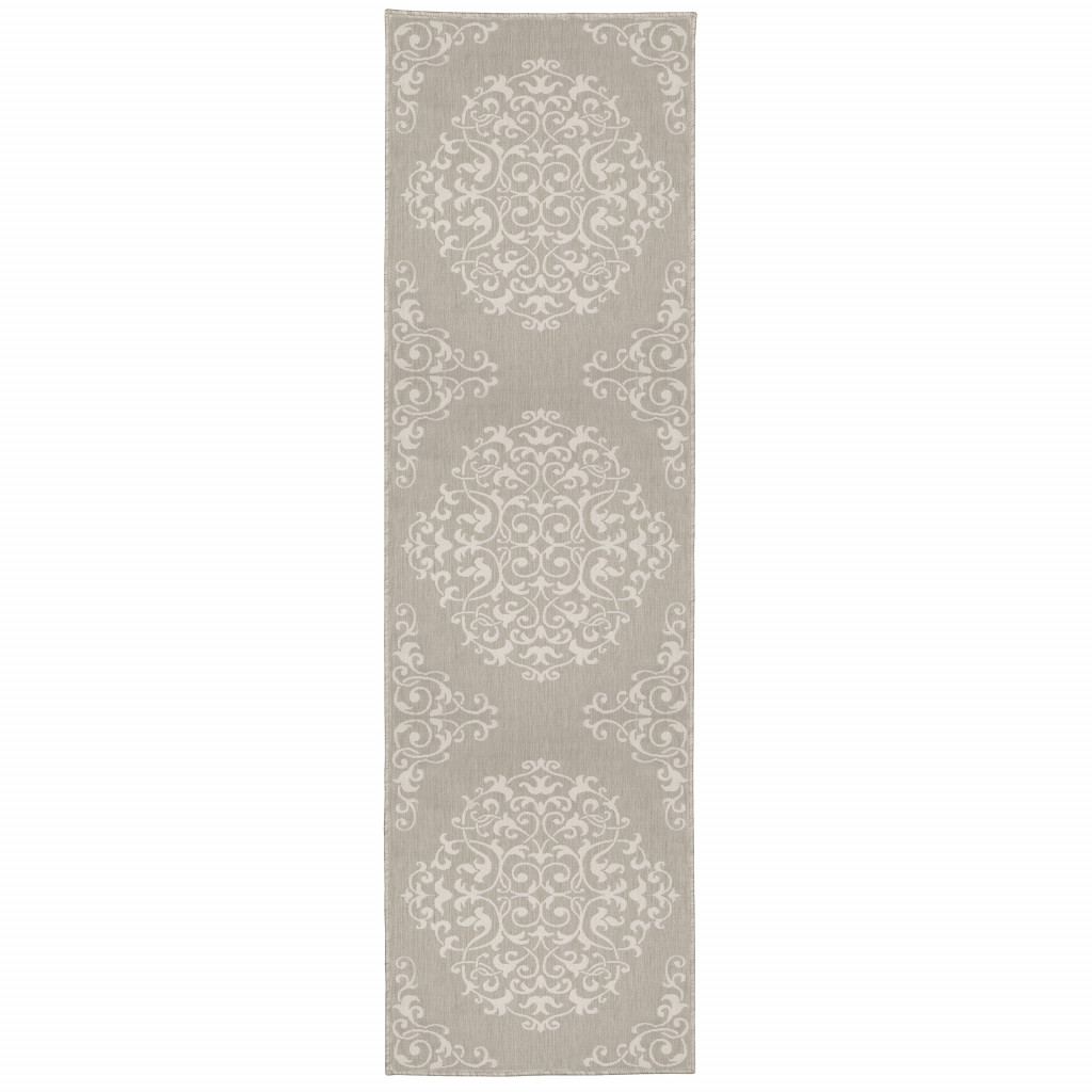 Add great coloration and comfortable texture to your space with this 2-foot x 7-foot gray and ivory oriental stain resistant indoor outdoor area rug. This rectangle shaped rug features a oriental design in gray and ivory to give it visual interest. A classic shape marries with good looking design for your space Ideal for spaces with kids and pets, this rug is stain resistant to help repel stains and spilled liquids. Area Rugs help to give warmth and sense of home to your space. 0.07-inch H x 22.05-inch W x 86.61-inch D