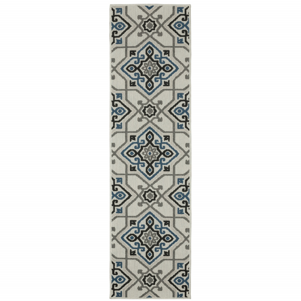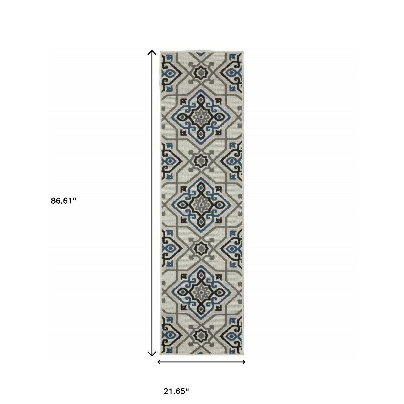 Add great coloration and comfortable texture to your space with this 2-foot x 7-foot blue and beige oriental stain resistant indoor outdoor area rug. This rectangle shaped rug features a oriental design in blue and beige to give it visual interest. A classic shape marries with good looking design for your space Ideal for spaces with kids and pets, this rug is stain resistant to help repel stains and spilled liquids. Area Rugs help to give warmth and sense of home to your space. 0.15-inch H x 21.65-inch W x 86.61-inch D