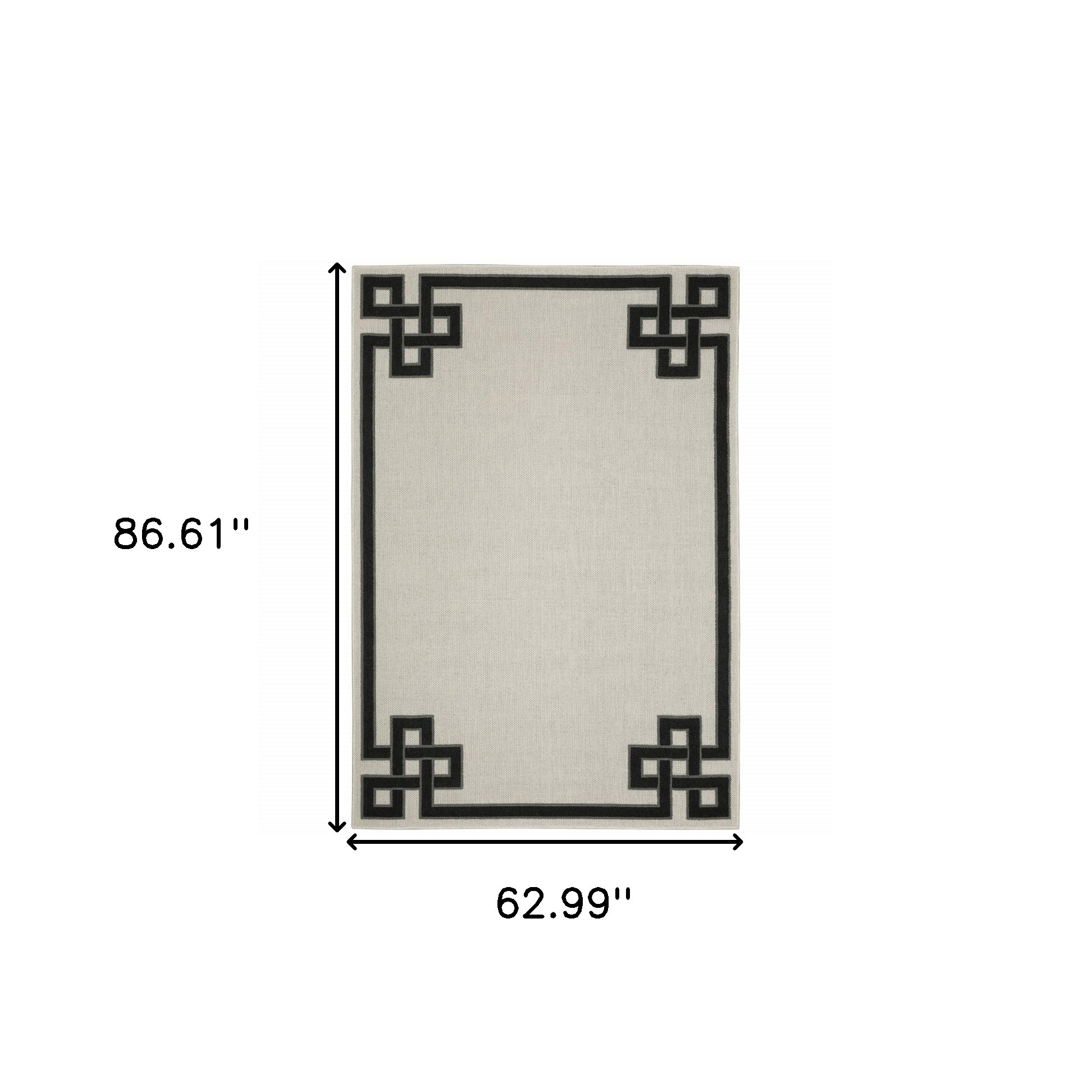 Set an inviting tone in your space with this 5-foot x 7-foot beige and black stain resistant indoor outdoor area rug. Ideal for spaces with kids and pets, this rug is stain resistant to help repel stains and spilled liquids. Area Rugs help to give warmth and sense of home to your space. 0.15-inch H x 62.99-inch W x 86.61-inch D