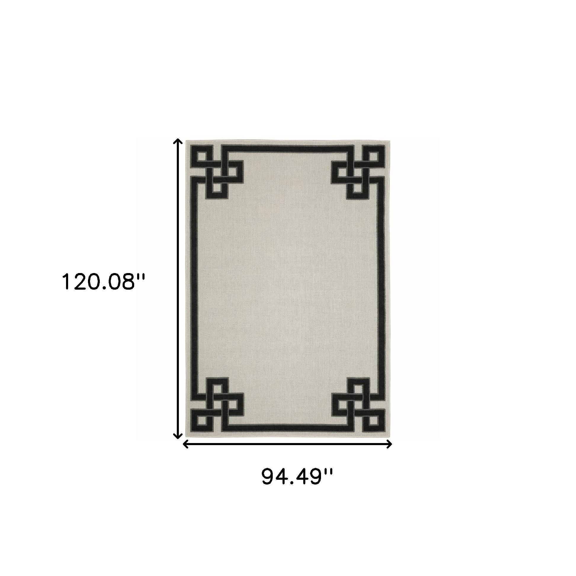 This 8-foot x 10-foot beige and black stain resistant indoor outdoor area rug, is a great way to add warmth to a room. Ideal for spaces with kids and pets, this rug is stain resistant to help repel stains and spilled liquids. Area Rugs help to give warmth and sense of home to your space. 0.15-inch H x 94.49-inch W x 120.08-inch D