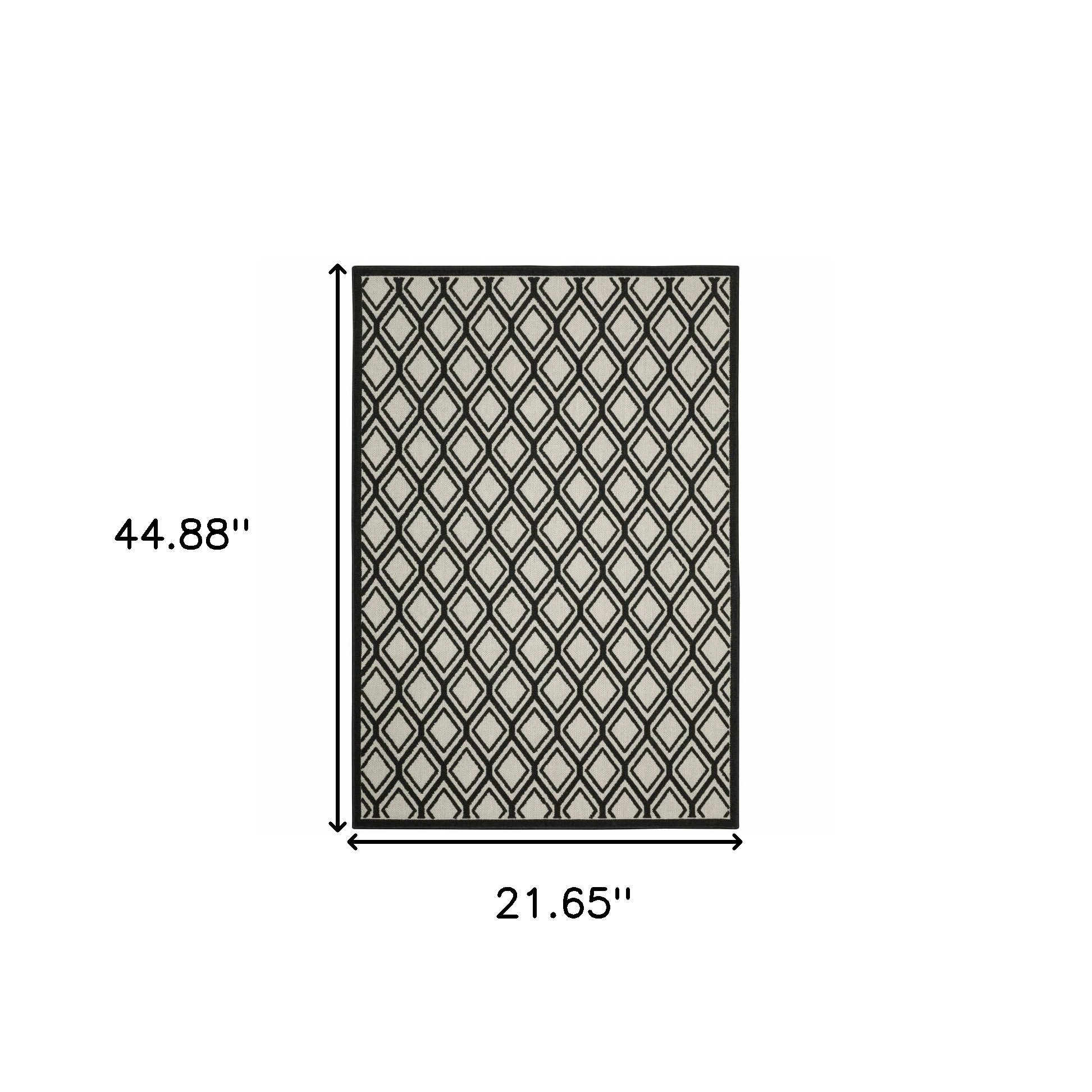 2' X 4' Beige and Black Geometric Stain Resistant Indoor Outdoor Area Rug