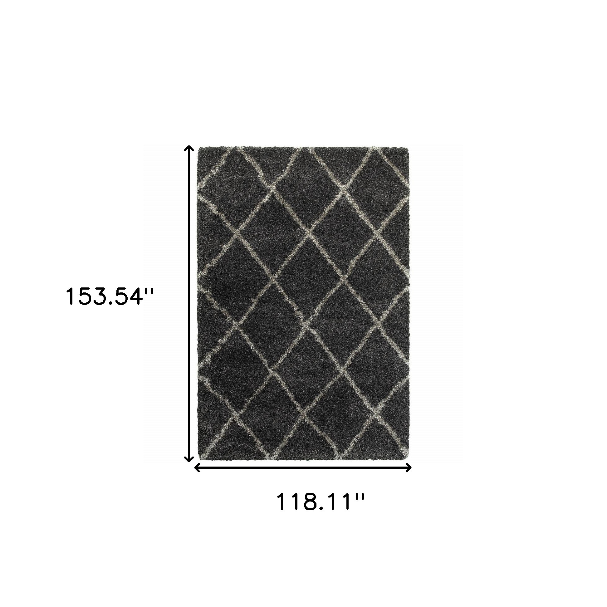 Set an inviting tone in your space with this 10' x 13' charcoal and grey geometric shag power loom stain resistant area rug. This rectangle shaped rug features a geometric design in charcoal and grey to give it visual interest. A classic shape marries with good looking design for your space Ideal for spaces with kids and pets, this rug is stain resistant to help repel stains and spilled liquids. The retro shag construction of this luxurious rug will provide a soft and comfortable barrier to color tile and hardwood floors. Area Rugs help to give warmth and sense of home to your space. 1.96" H x 118.11" W x 153.54" D