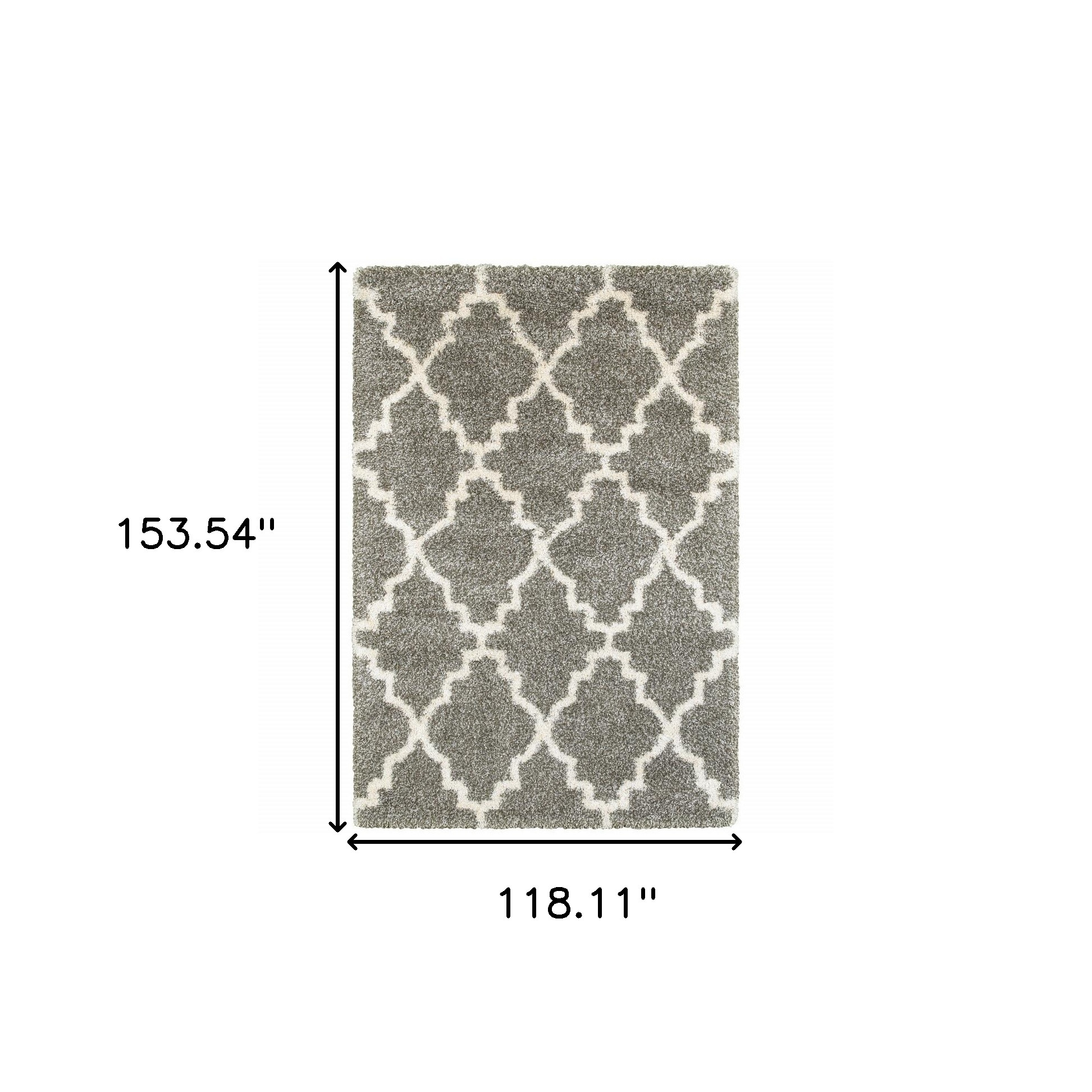 Add great coloration and comfortable texture to your space with this 10' x 13' grey and ivory geometric shag power loom stain resistant area rug. This rectangle shaped rug features a geometric design in grey and ivory to give it visual interest. A classic shape marries with good looking design for your space Ideal for spaces with kids and pets, this rug is stain resistant to help repel stains and spilled liquids. The retro shag construction of this luxurious rug will provide a soft and comfortable barrier to color tile and hardwood floors. Area Rugs help to give warmth and sense of home to your space. 1.96" H x 118.11" W x 153.54" D