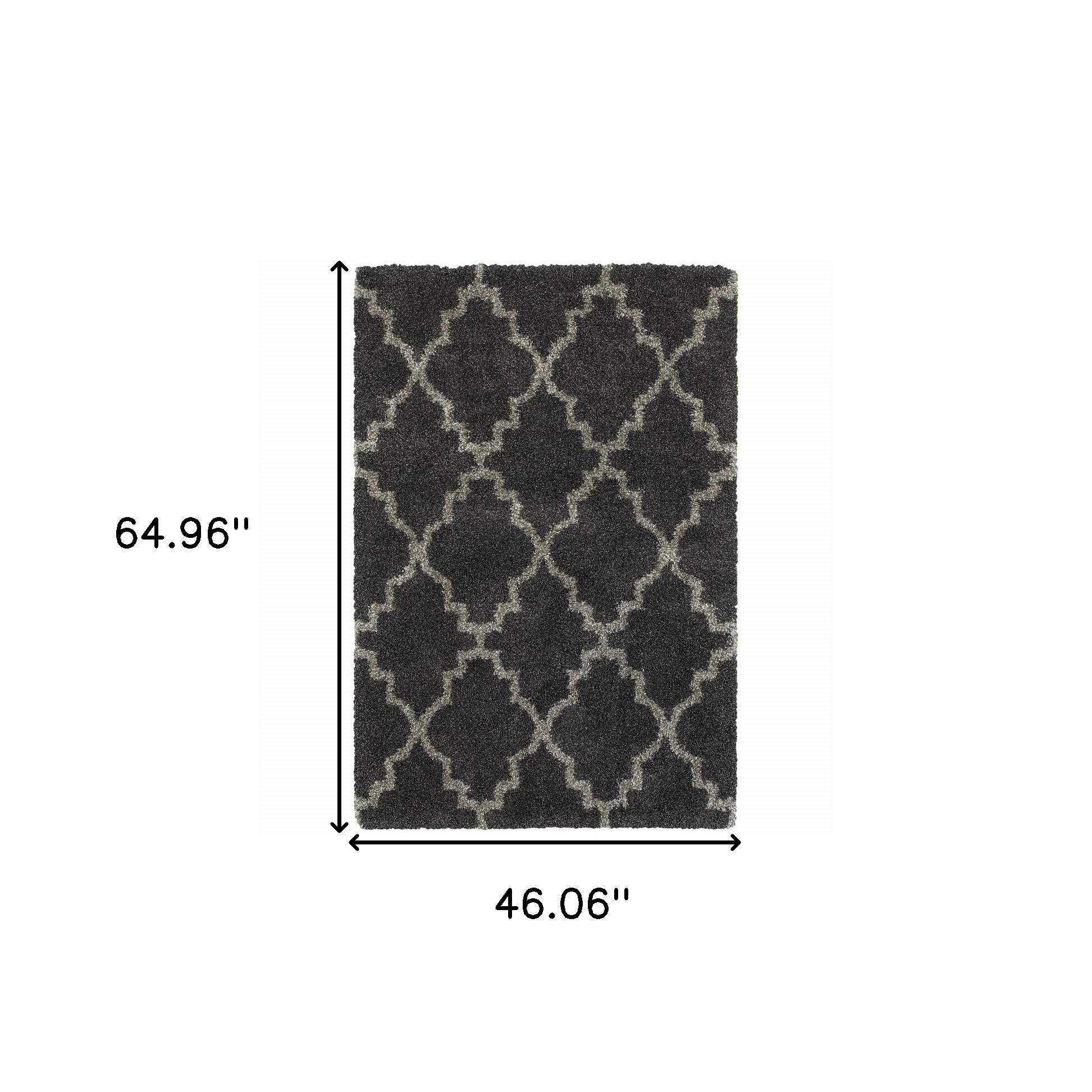Add great coloration and comfortable texture to your space with this 4' x 6' charcoal and grey geometric shag power loom stain resistant area rug. This rectangle shaped rug features a geometric design in charcoal and grey to give it visual interest. A classic shape marries with good looking design for your space Ideal for spaces with kids and pets, this rug is stain resistant to help repel stains and spilled liquids. The retro shag construction of this luxurious rug will provide a soft and comfortable barrier to color tile and hardwood floors. Place this area rug against a hardwood or tile floor and it will enliven your living space with style and sophistication. 1.96" H x 46.06" W x 64.96" D