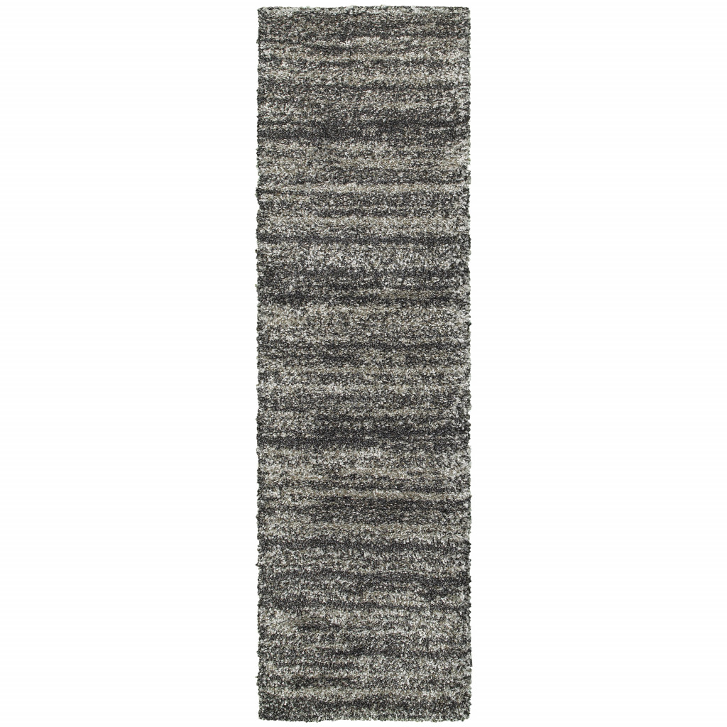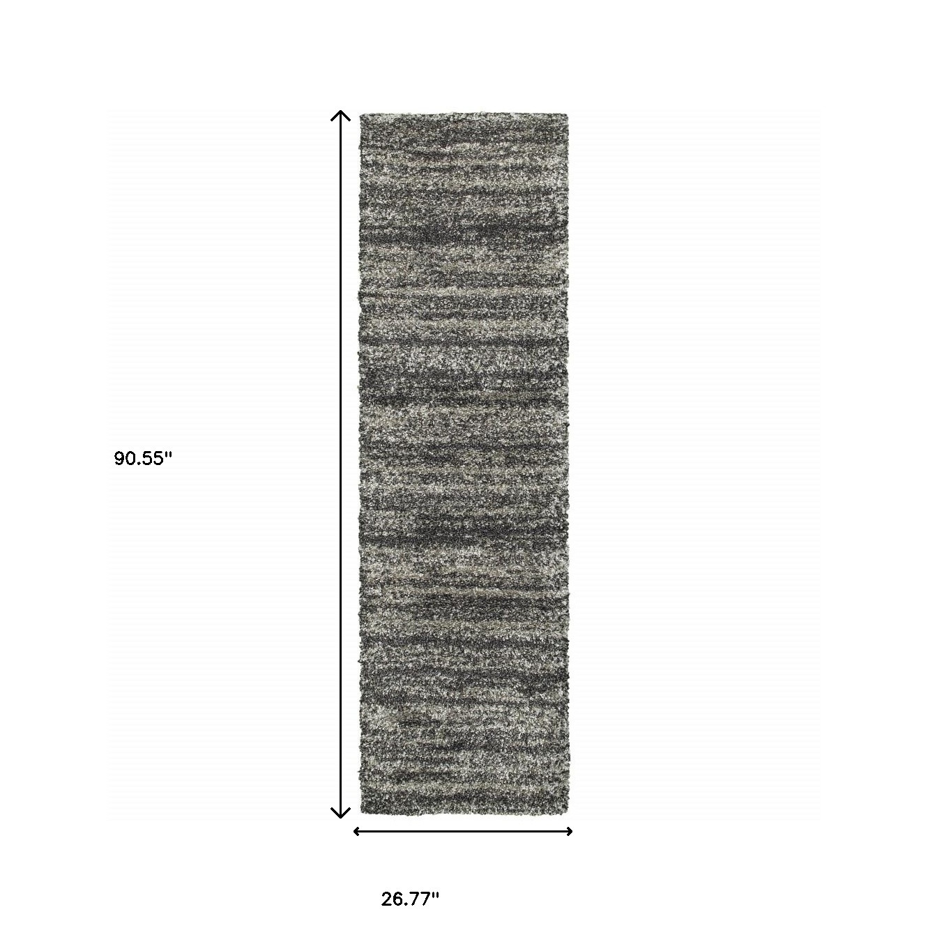 Add some artistry to your room with this 8-foot black and gray geometric shag power loom runner rug. This runner shaped rug features a geometric design in black and gray to give it visual interest. A classic shape marries with good looking design for your space ideal for spaces with kids and pets, this rug is stain resistant to help repel stains and spilled liquids. The retro shag construction of this luxurious rug will provide a soft and comfortable barrier to color tile and hardwood floors. Area rugs help to give warmth and sense of home to your space. 1.96-inch H x 26.77-inch W x 90.55-inch D