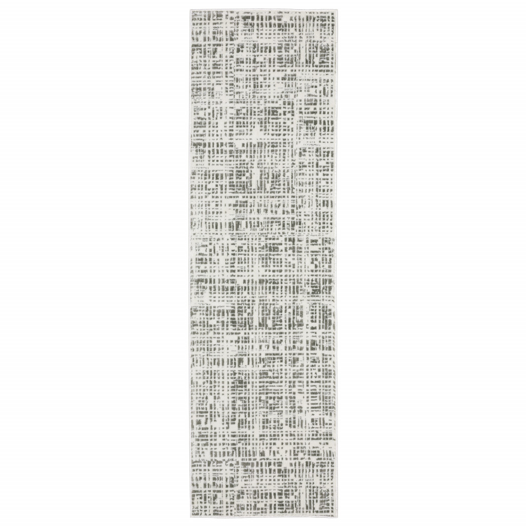Add great coloration and comfortable texture to your space with this 2' x 8' white and grey abstract power loom stain resistant runner rug. This runner shaped rug features a abstract design in white and grey to give it visual interest. A classic shape marries with good looking design for your space Ideal for spaces with kids and pets, this rug is stain resistant to help repel stains and spilled liquids. Place this area rug against a hardwood or tile floor and it will enliven your living space with style and sophistication. 0.31" H x 26.77" W x 92.52" D