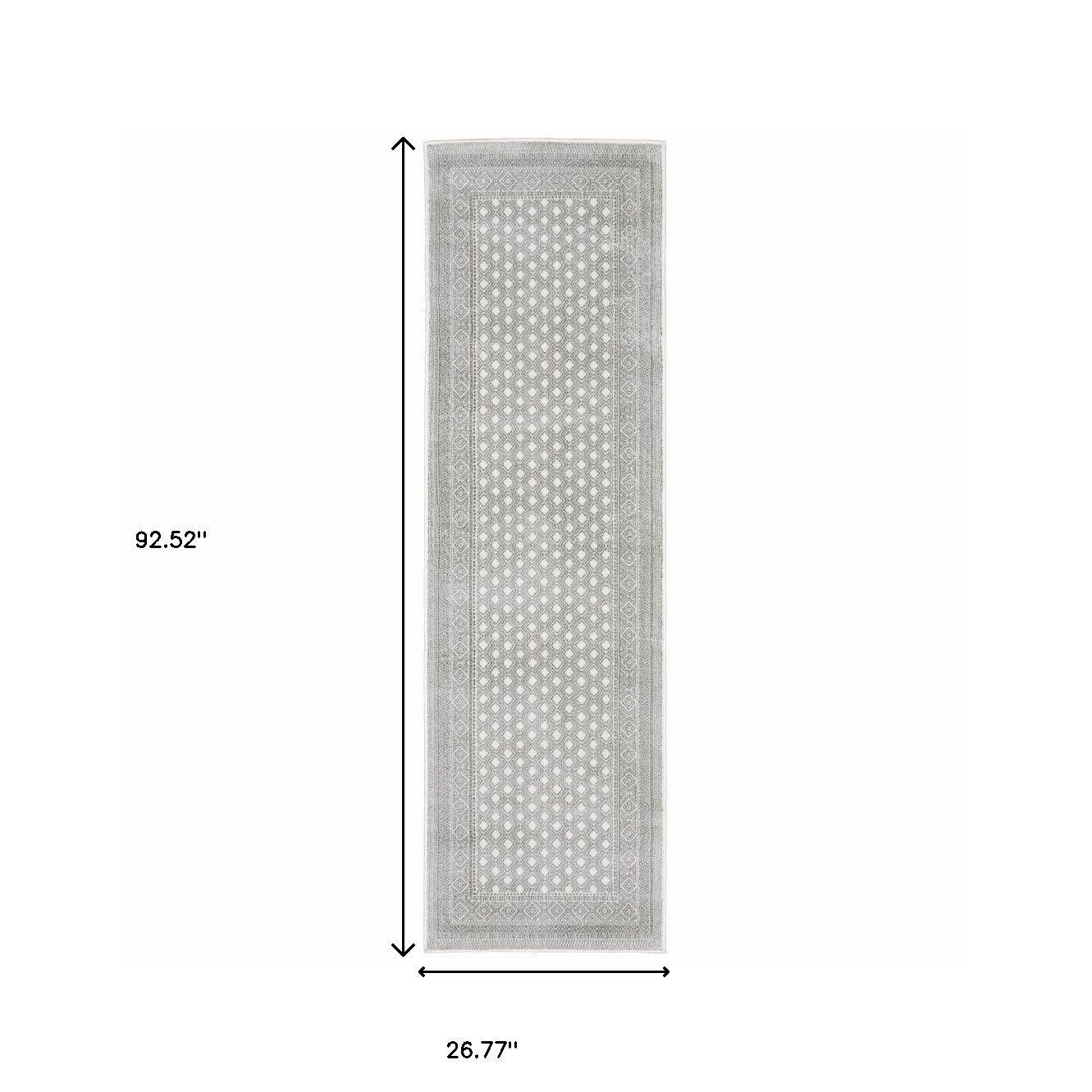 Add great coloration and comfortable texture to your space with this 2' x 8' white and grey oriental power loom stain resistant runner rug. This runner shaped rug features a oriental design in white and grey to give it visual interest. A classic shape marries with good looking design for your space Ideal for spaces with kids and pets, this rug is stain resistant to help repel stains and spilled liquids. Place this area rug against a hardwood or tile floor and it will enliven your living space with style and sophistication. 0.31" H x 26.77" W x 92.52" D