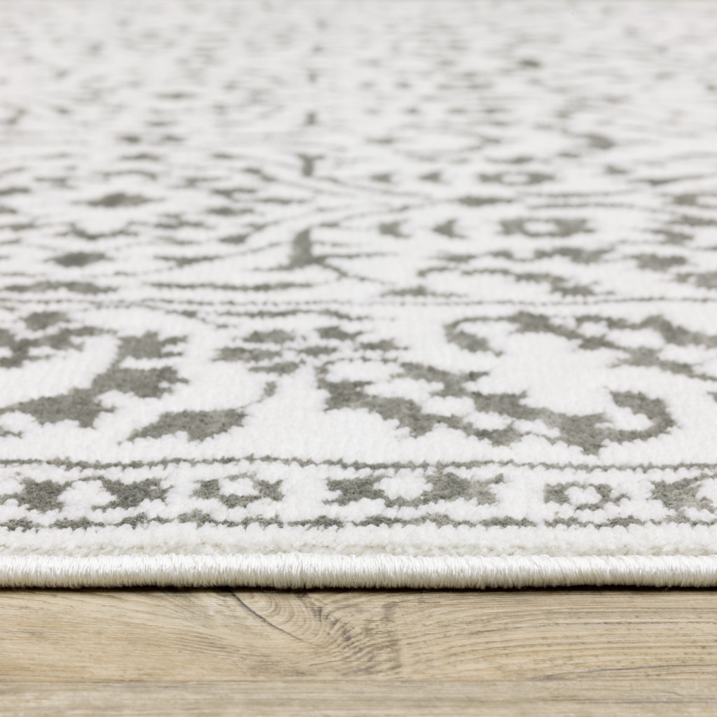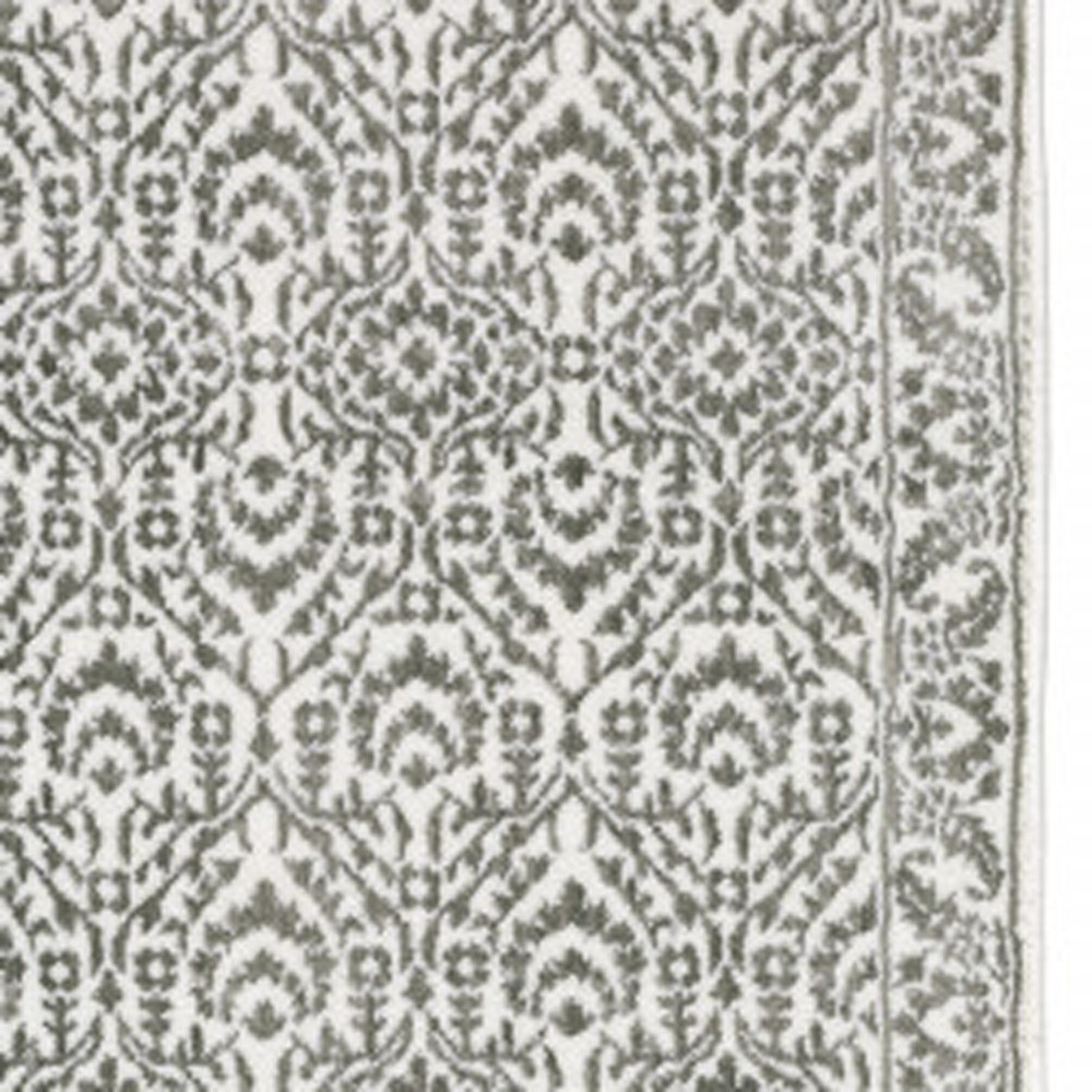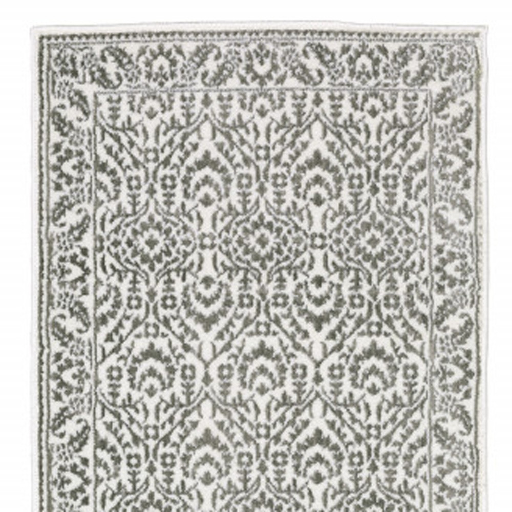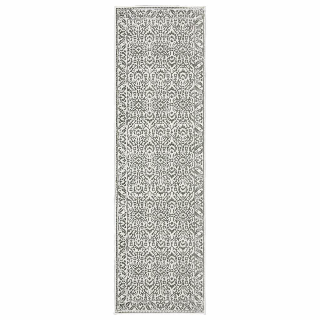 This 2' x 8' grey and white floral power loom stain resistant runner rug, is a great way to add warmth to a room. This runner shaped rug features a floral design in grey and white to give it visual interest. A classic shape marries with good looking design for your space Ideal for spaces with kids and pets, this rug is stain resistant to help repel stains and spilled liquids. Area Rugs help to give warmth and sense of home to your space. 0.31" H x 26.77" W x 92.52" D