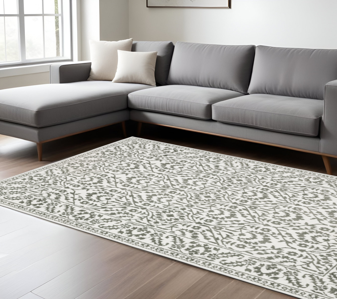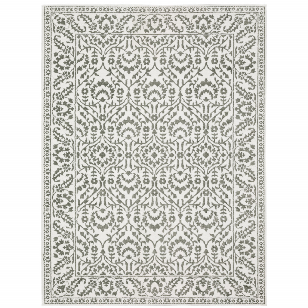 This 7-foot x 10-foot gray and white floral distressed area rug, is a great way to add warmth to a room. Ideal for spaces with kids and pets, this rug is stain resistant to help repel dirt and spilled liquids. Built to last, this rug crafted from polyester fibers is known for its durability and long lasting appeal. Rugs are a great way to showcase your style, hide imperfections, warm your home and reduce noise. 78.74-inch h x 116.54-inch w x 0.31-inch d.