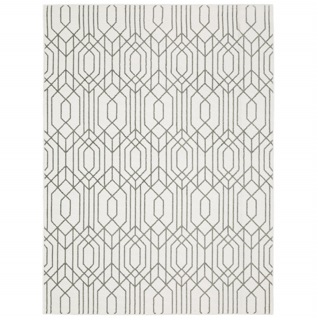 3' X 5' White And Grey Geometric Power Loom Stain Resistant Area Rug