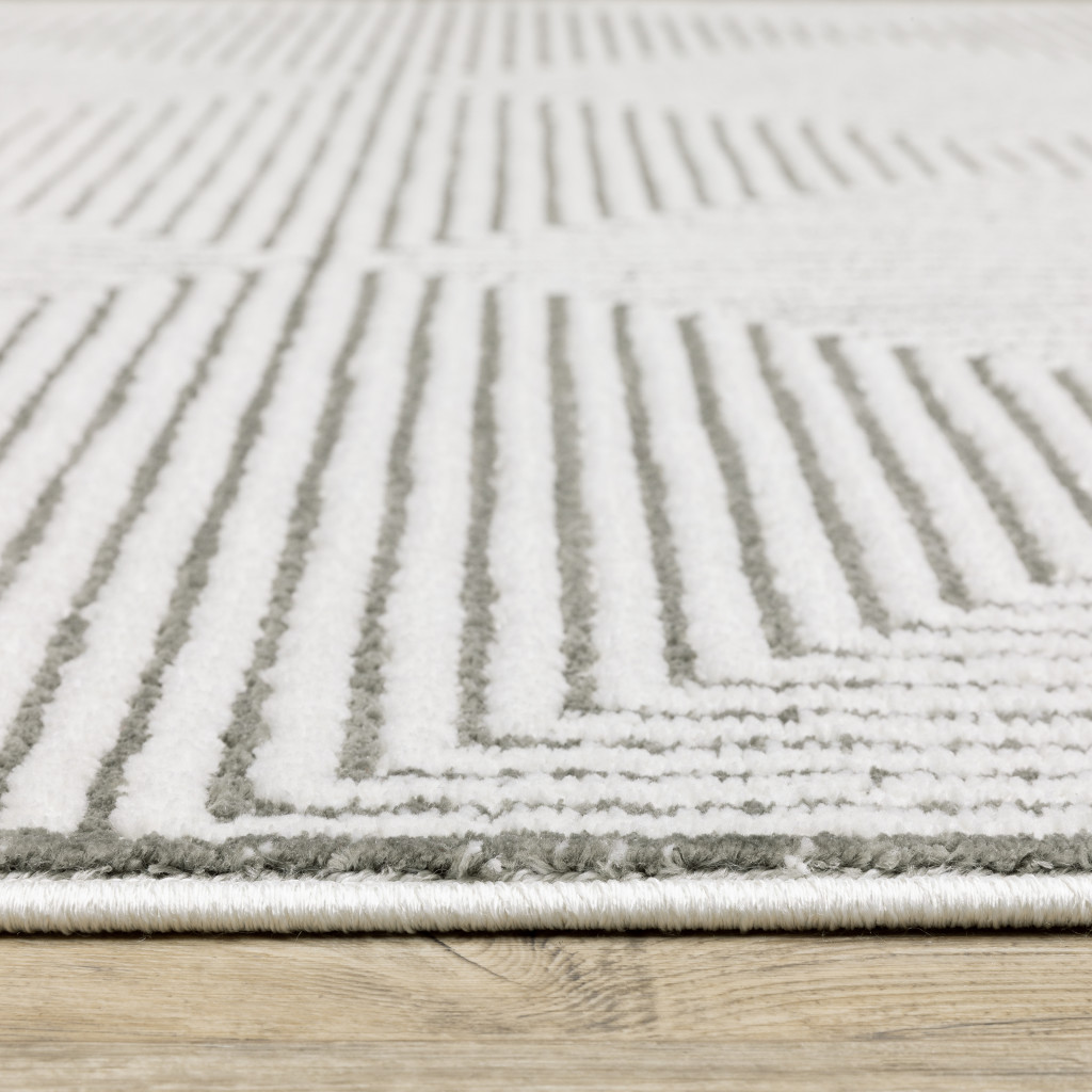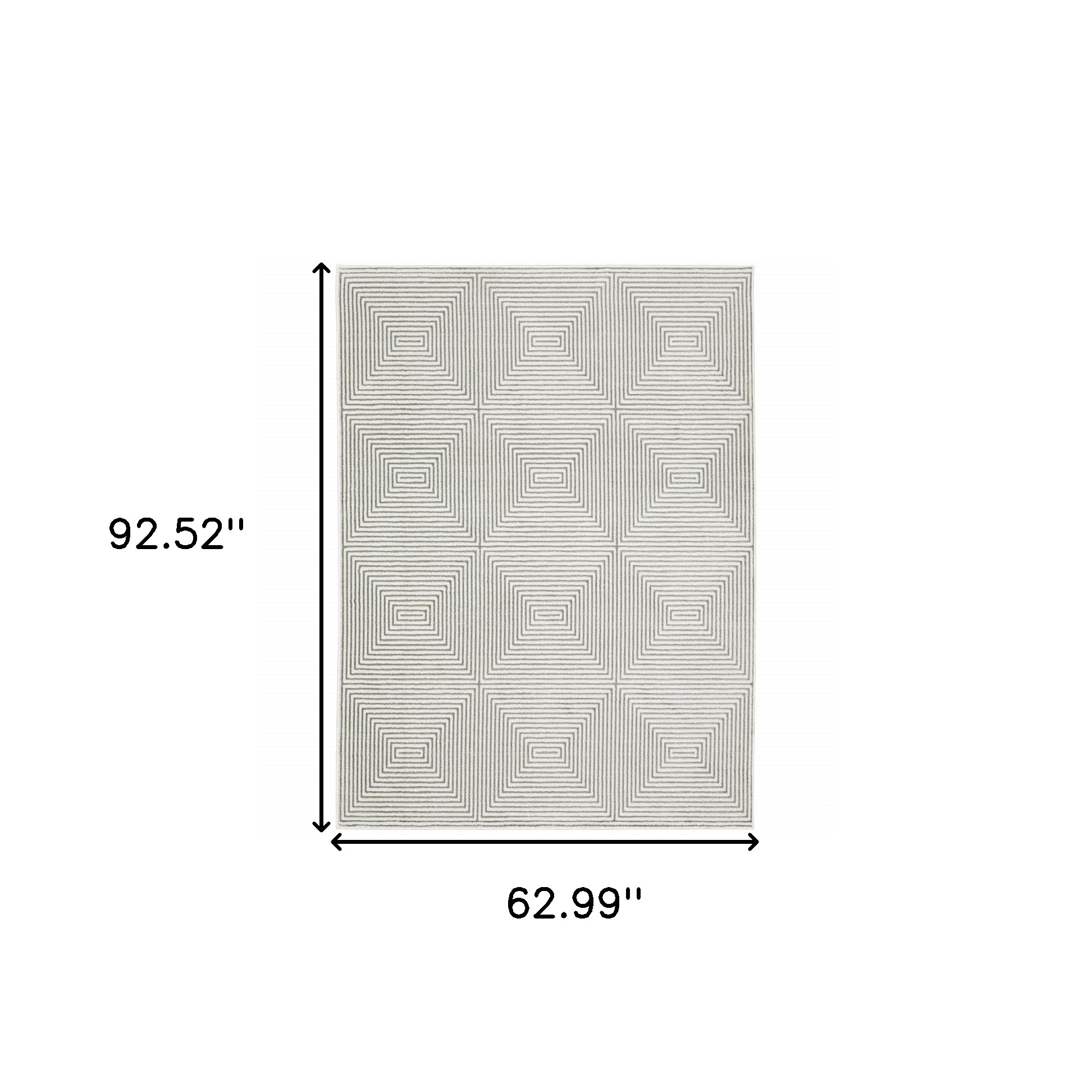 Add some artistry to your room with this 5' x 8' grey and white geometric power loom stain resistant area rug. This rectangle shaped rug features a geometric design in grey and white to give it visual interest. A classic shape marries with good looking design for your space Ideal for spaces with kids and pets, this rug is stain resistant to help repel stains and spilled liquids. Area Rugs help to give warmth and sense of home to your space. 0.31" H x 62.99" W x 92.52" D